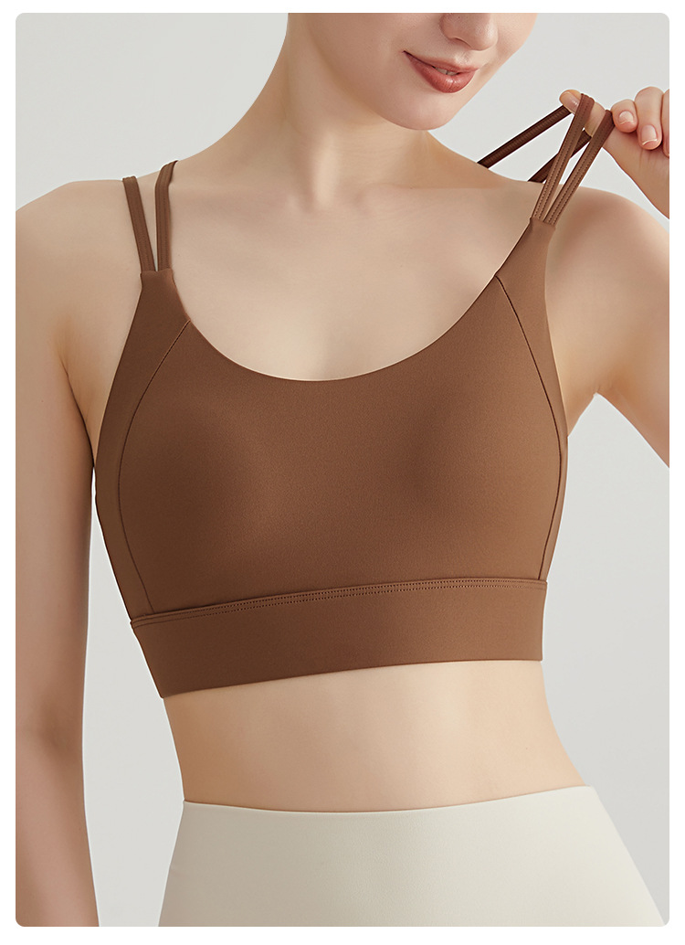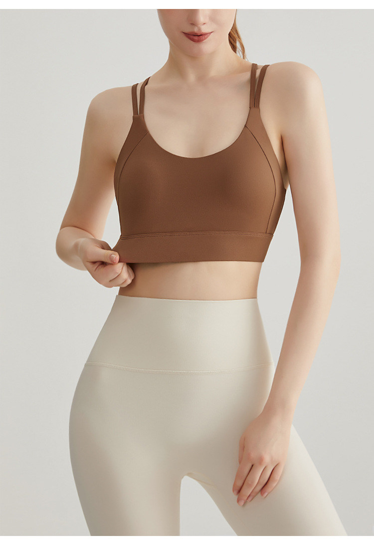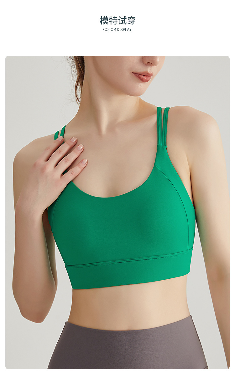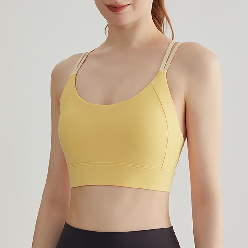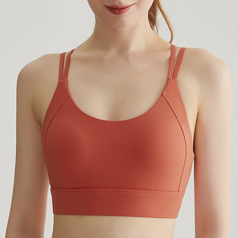Chuanton 고강도 충격 방지 스포츠 속옷 여성용 원피스 고정 가슴 패드 얇은 어깨 스트랩 크로스 스포츠 브라