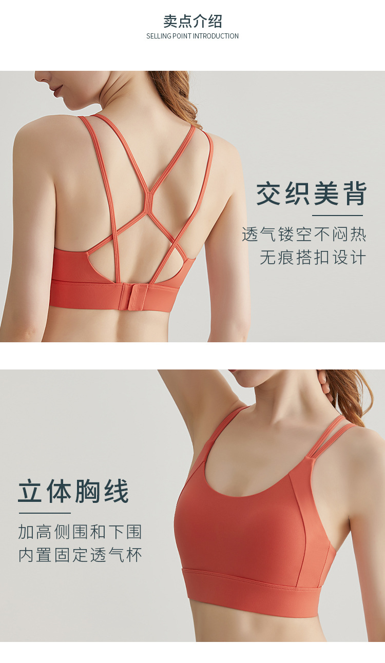 Chuanton 고강도 충격 방지 스포츠 속옷 여성용 원피스 고정 가슴 패드 얇은 어깨 스트랩 크로스 스포츠 브라스토어 가기