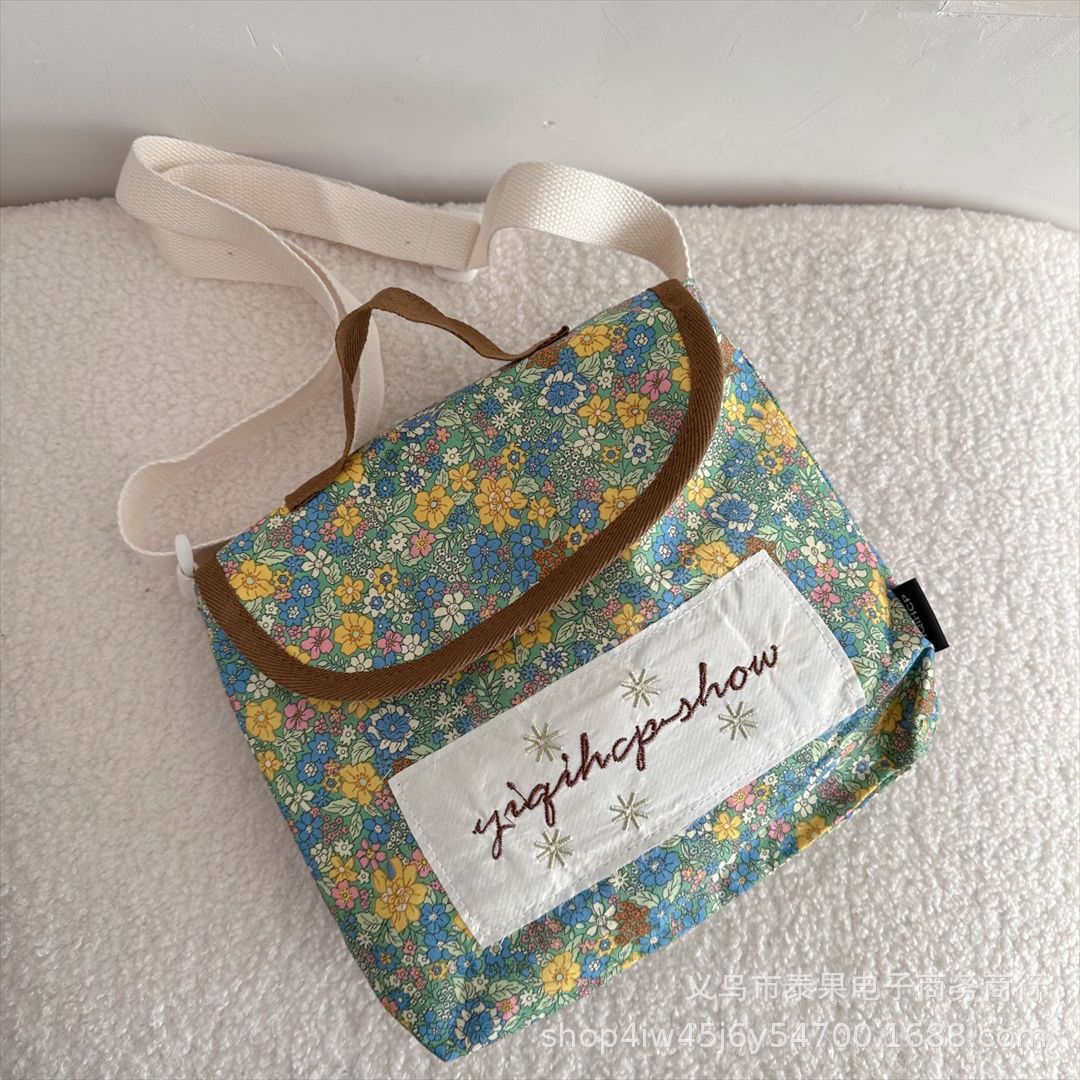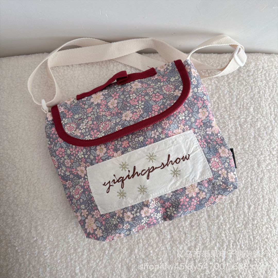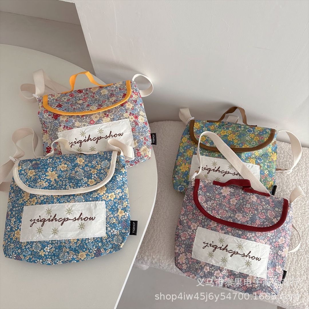 한국식 인스타그램 스타일 어린이 서양식 플로럴 플립 커버 캐주얼 컨동굴 숄더백 아기의 모리 스트랩 트렌디 크로스 바디 백스토어 가기