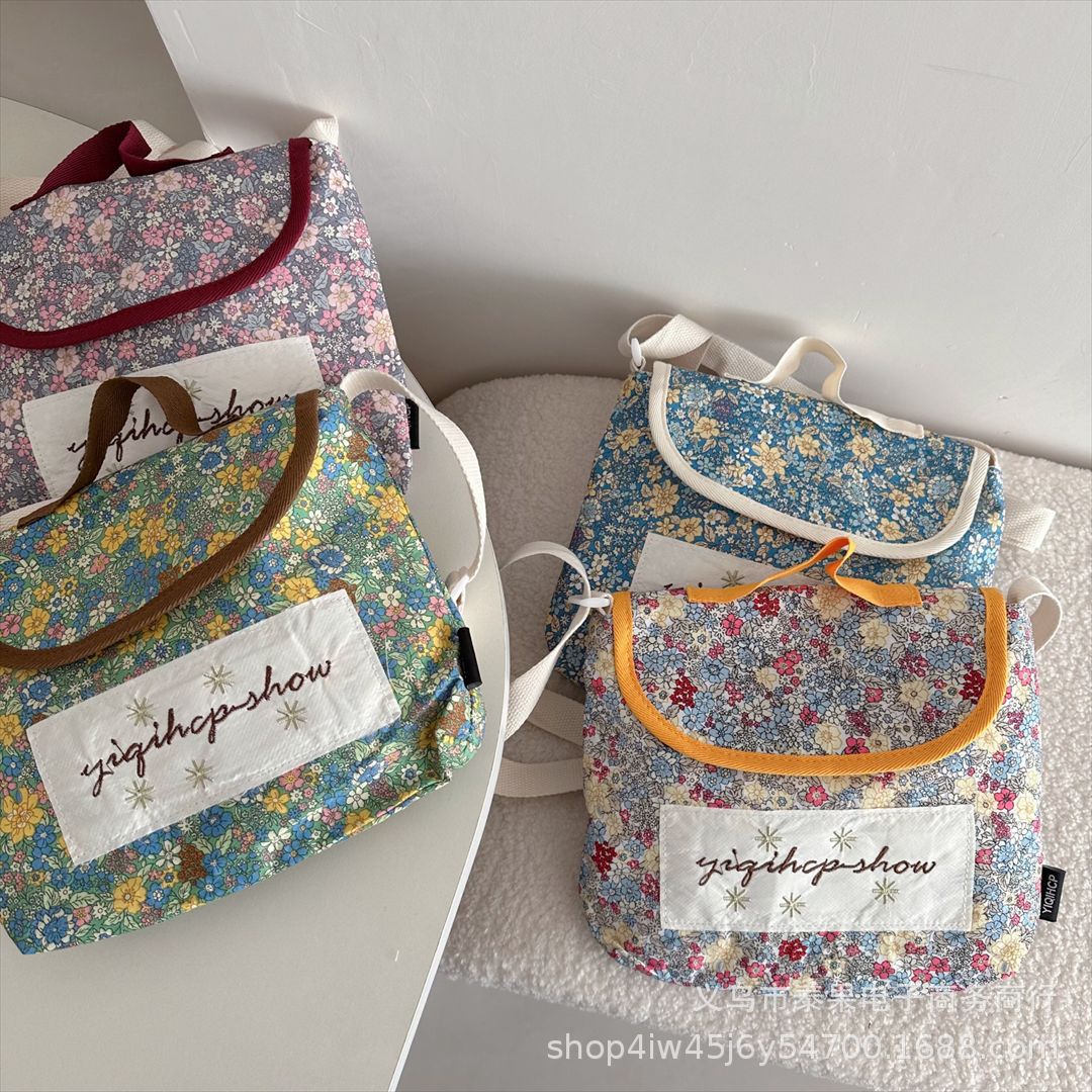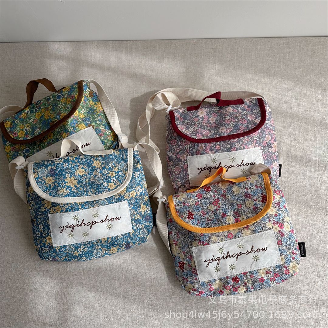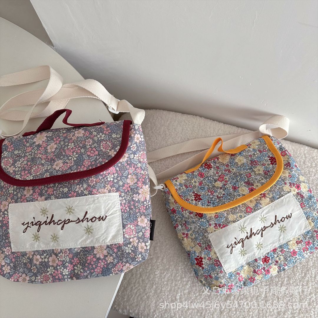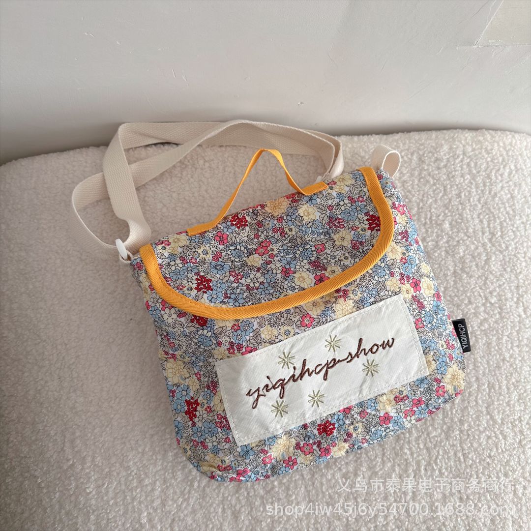 한국식 인스타그램 스타일 어린이 서양식 플로럴 플립 커버 캐주얼 컨동굴 숄더백 아기의 모리 스트랩 트렌디 크로스 바디 백스토어 가기