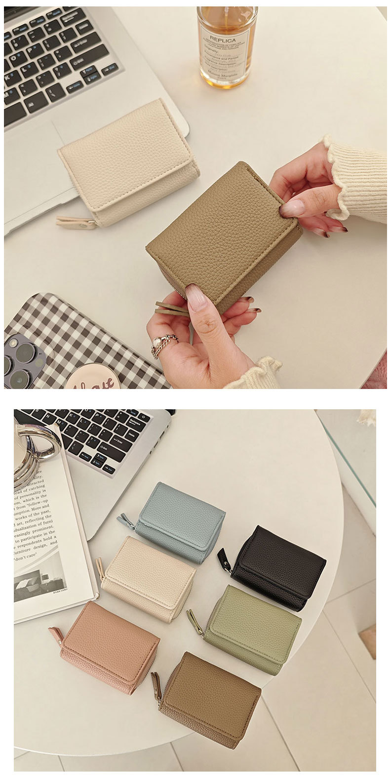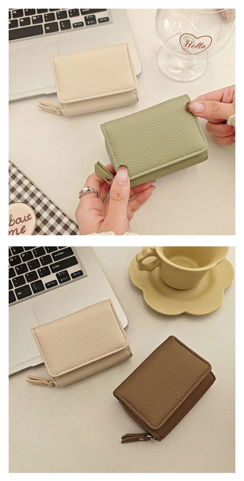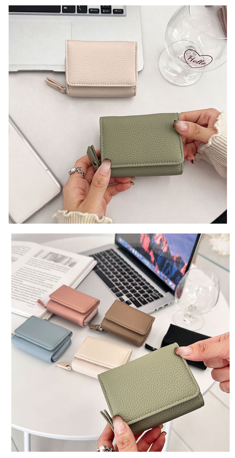 일본 스타일 짧은 정품 가죽 섬유 여성의 3 배 미니 PU 지갑 대용량 새로운 다기능 동전 가방스토어 가기