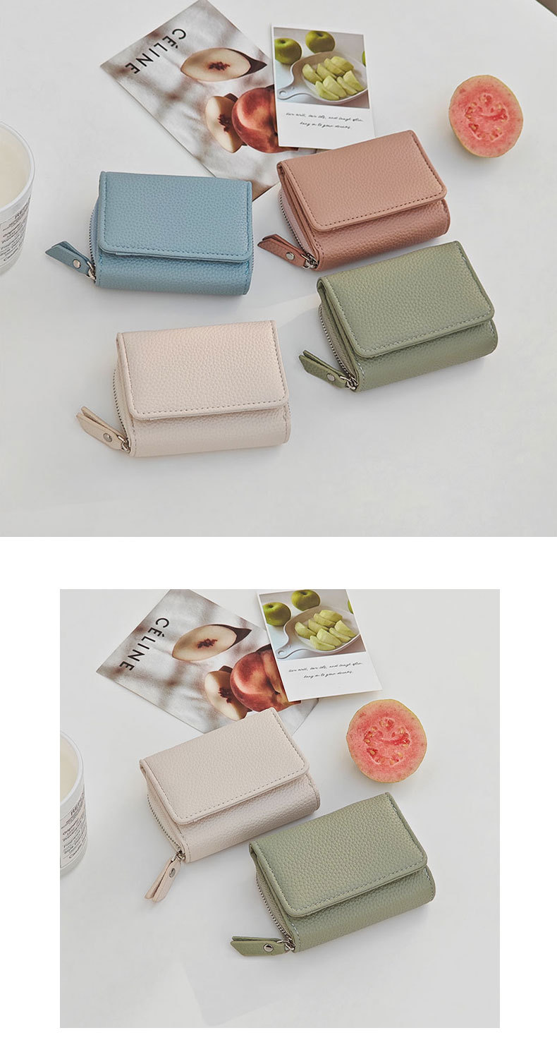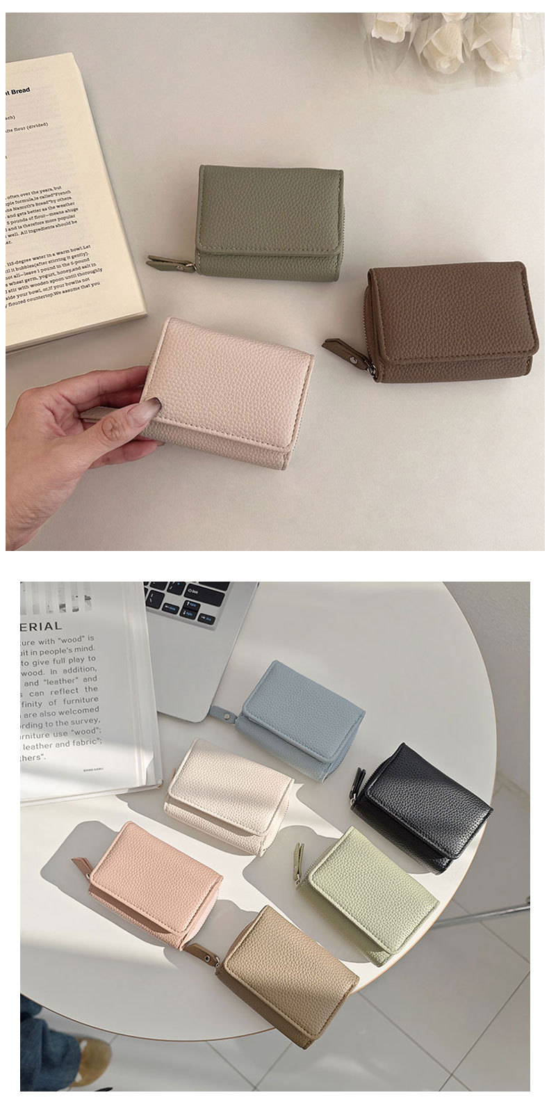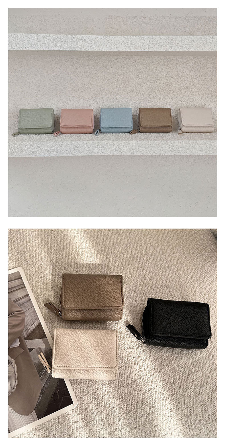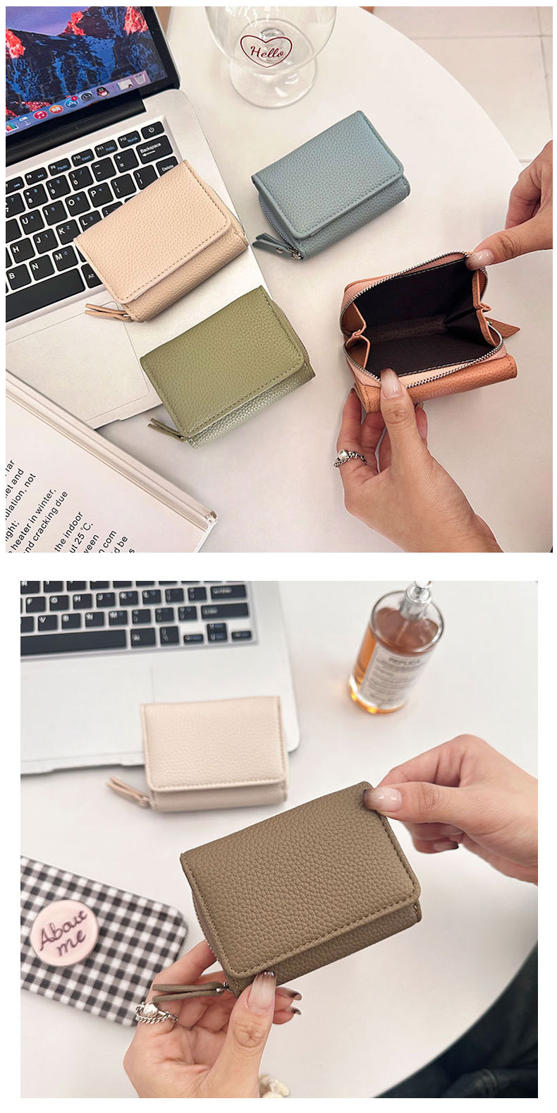 일본 스타일 짧은 정품 가죽 섬유 여성의 3 배 미니 PU 지갑 대용량 새로운 다기능 동전 가방