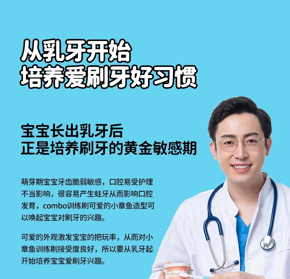 【콤보 브랜드 직영】유아용 칫솔 부드러운 모 아기 0~3세 6세 유치 청소 훈련용