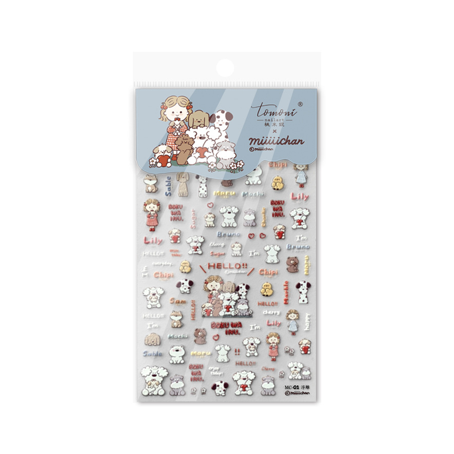 Tomoni 양각 네일 스티커 인기있는 귀여운 네일 스티커 공장 도매 왕왕 가족 소녀 강아지 MC01스토어 가기