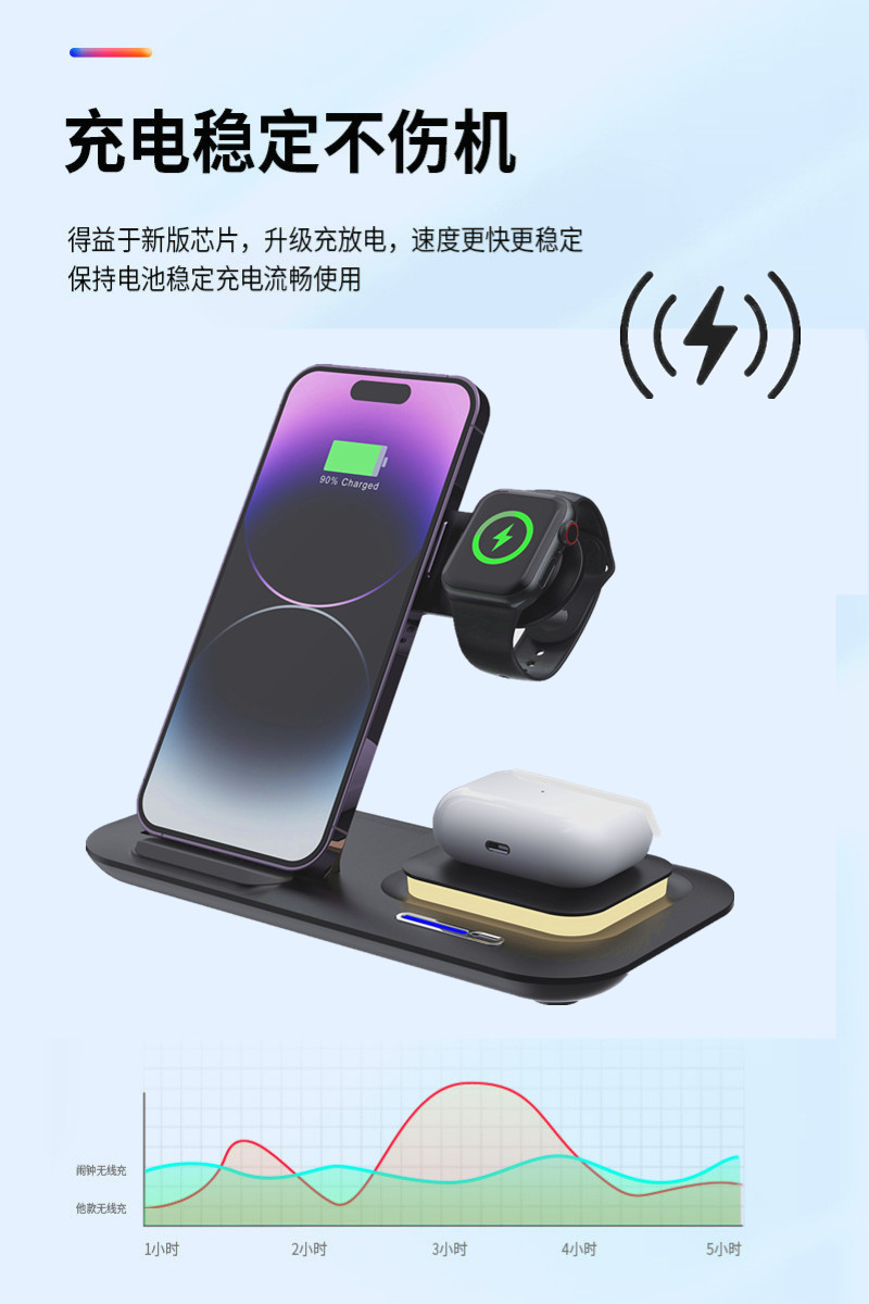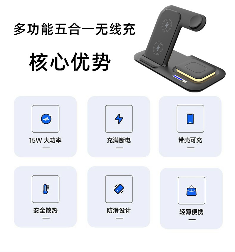 5-in-1 무선 충전기 야간 조명 Apple 휴대폰에 적합한 자기 무선 충전 휴대폰 홀더