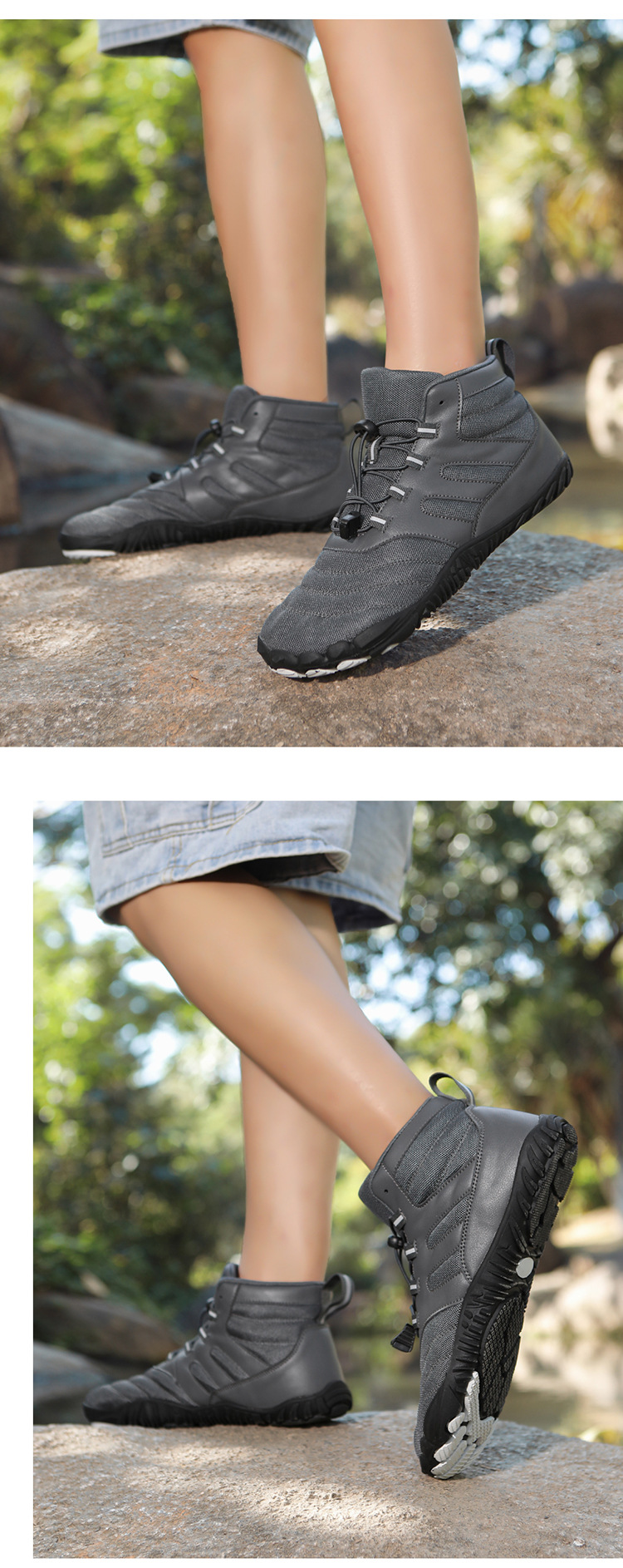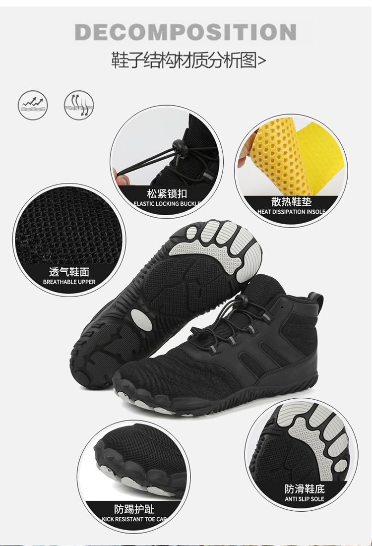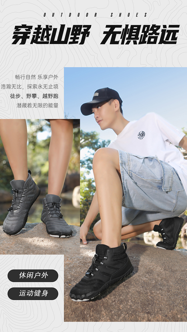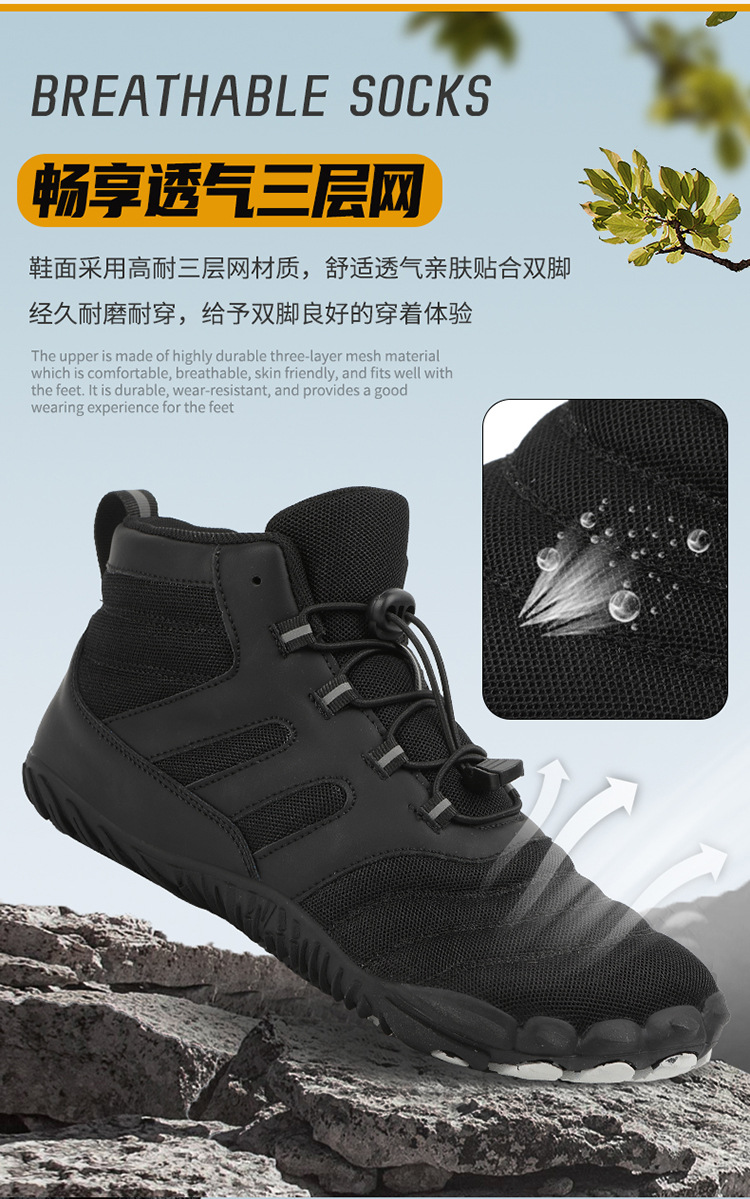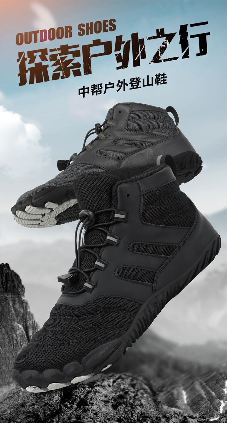 봄과 가을 야외 5 손가락 하이킹 신발 미끄럼 방지 중상 하이킹 신발 더블 메쉬 통기성 등산 신발 남성 및 여성 스포츠 신발