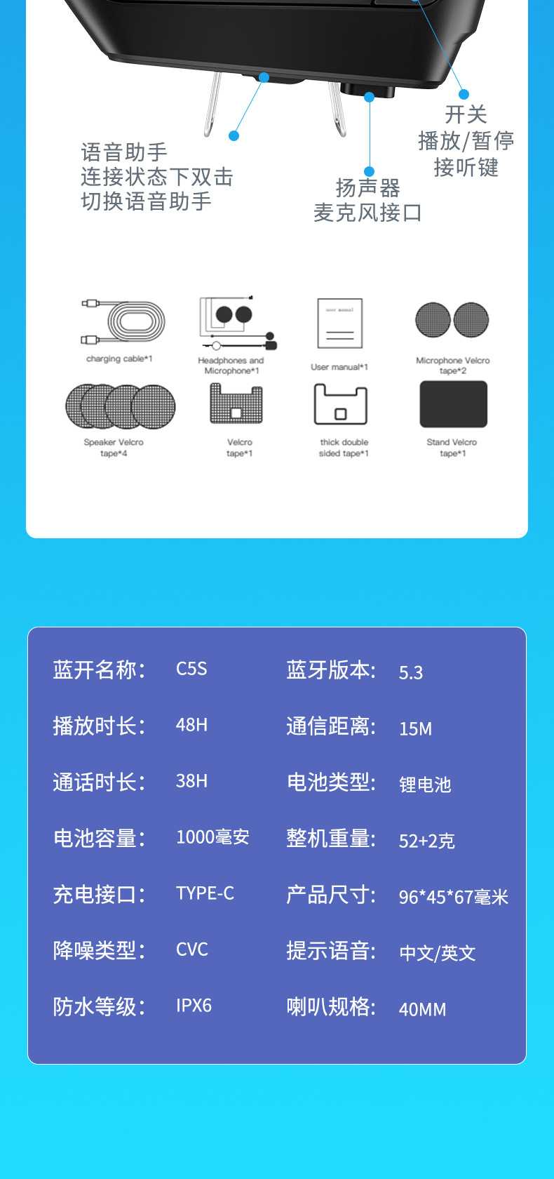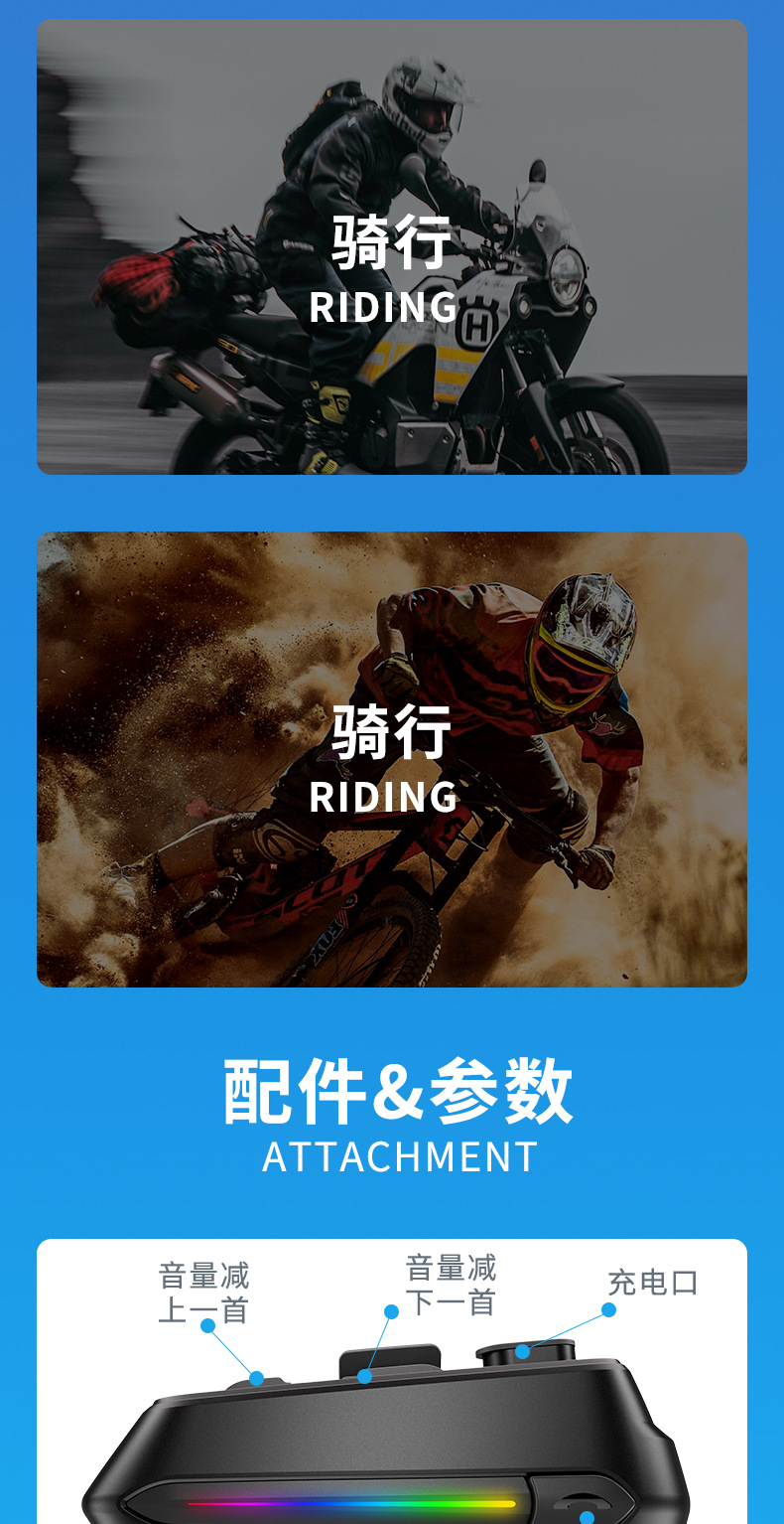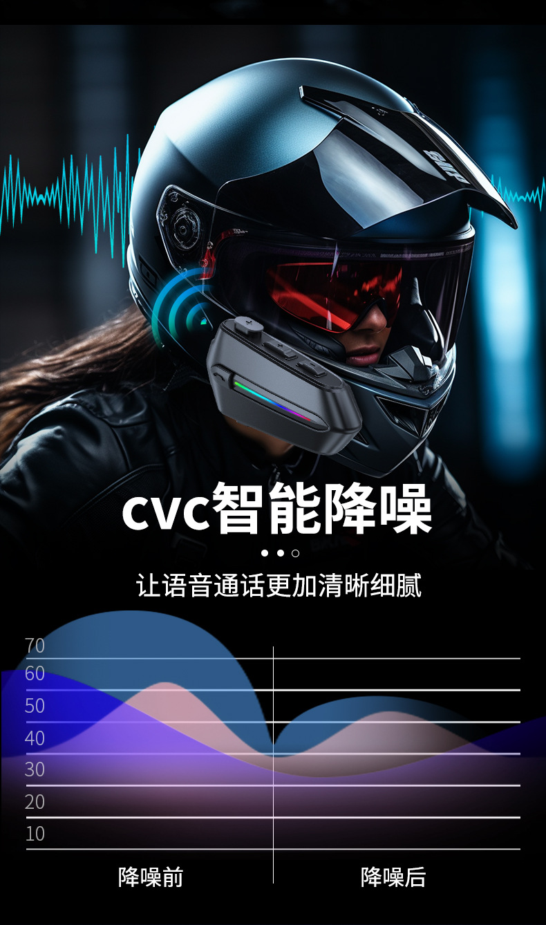 프라이빗 모델 풀페이스 헬멧, 리브레스트 헬멧용 특수 블루투스 헤드셋, 초장시간 사용 가능한 오토바이 라이딩 방수 헬멧, 무선 소음 감소 기능