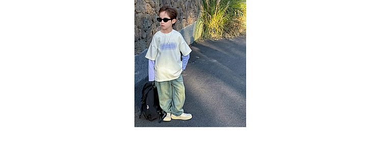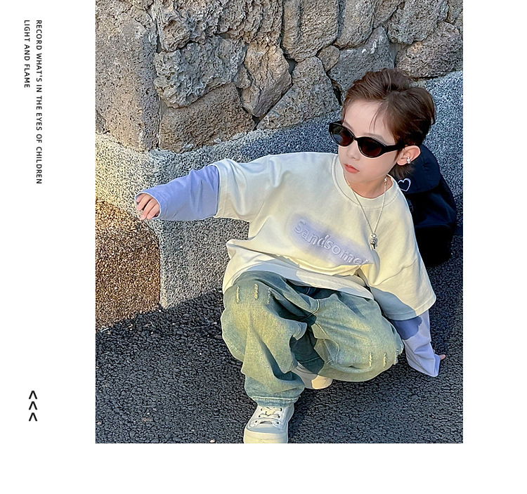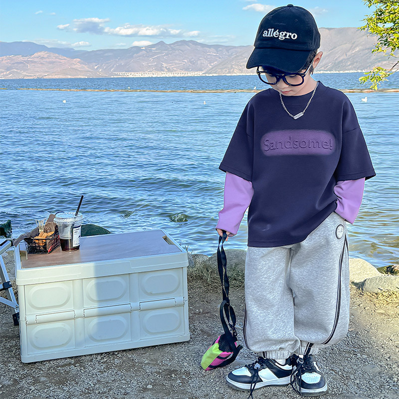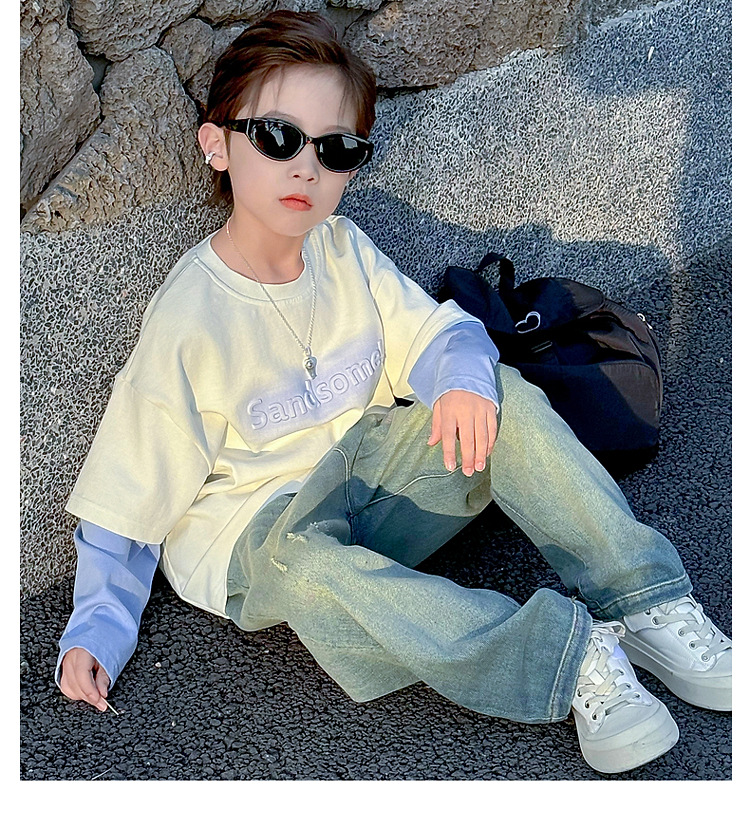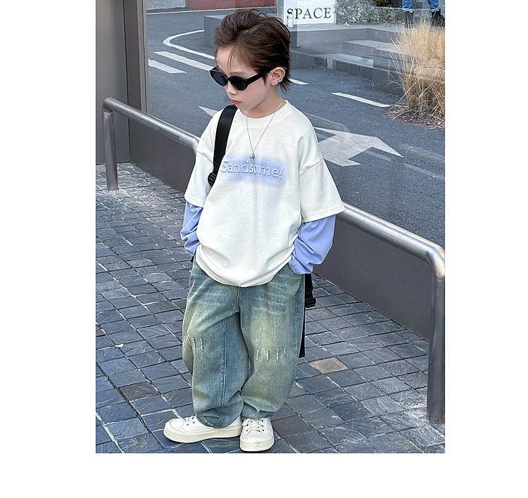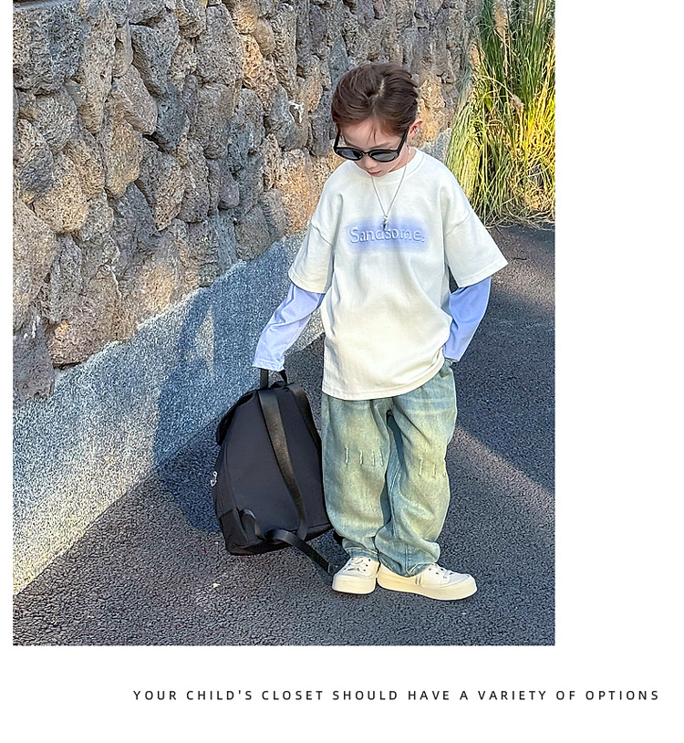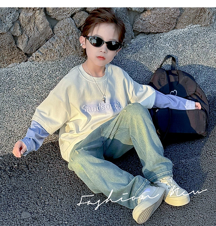 동화 메모리 소년 긴팔 티셔츠 봄 의류 2025 새로운 어린이 봄 가짜 투피스 화이트 코튼 탑 봄스토어 가기