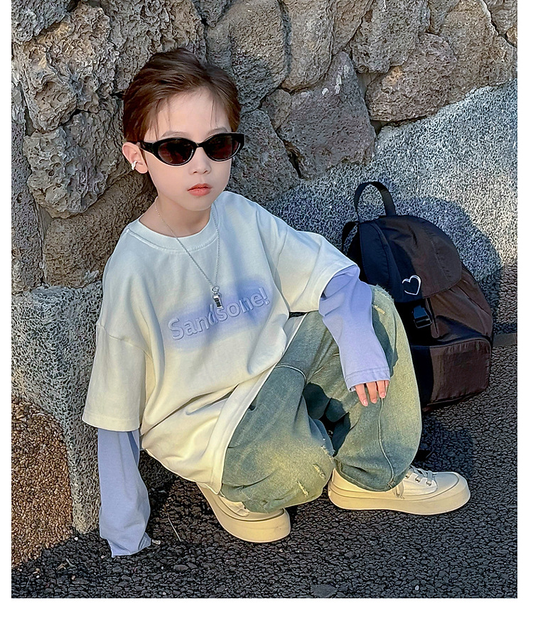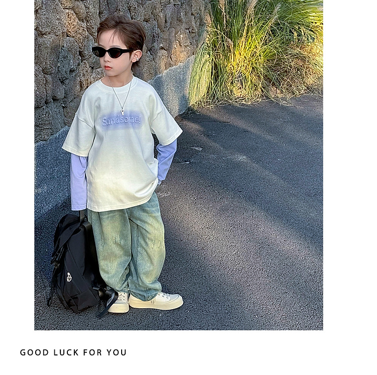 동화 메모리 소년 긴팔 티셔츠 봄 의류 2025 새로운 어린이 봄 가짜 투피스 화이트 코튼 탑 봄