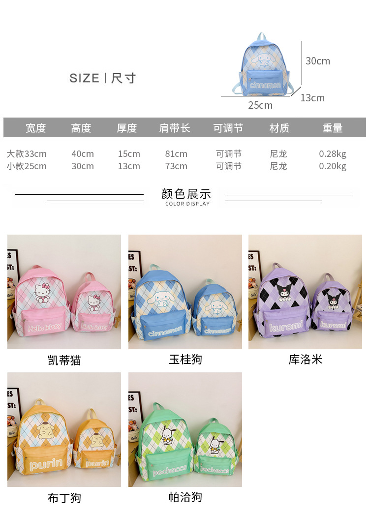 새로운 만화 유치원 책가방 쿨로 미 배낭 귀여운 소년과 소녀 학생 배낭 대용량 어린이 책