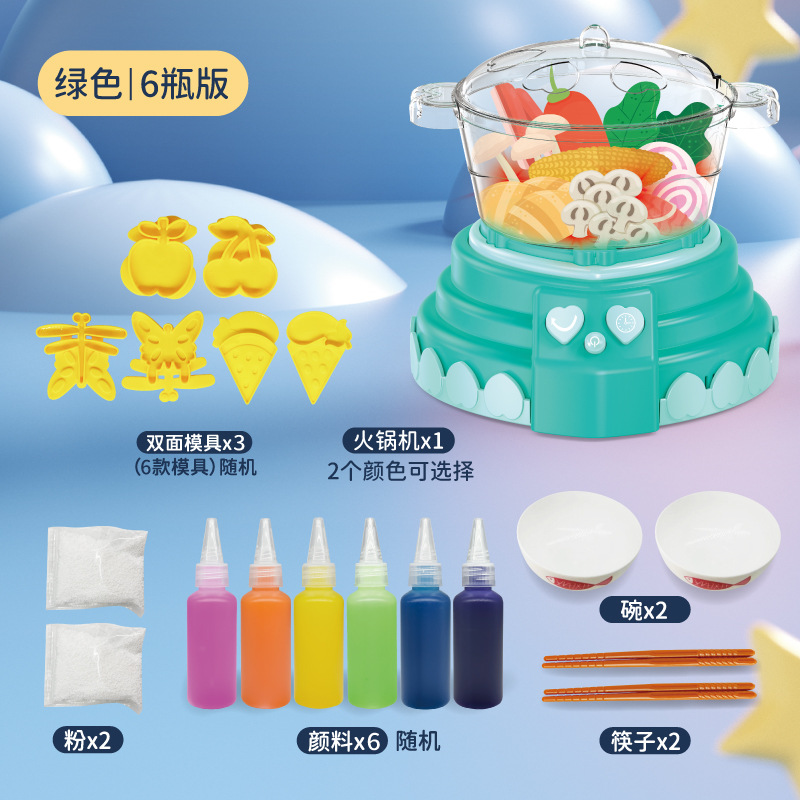• 697 녹색 냄비 기계 세트 (6 색상, 6 금형, 2 파우더, 무료 그릇 및 젓가락)