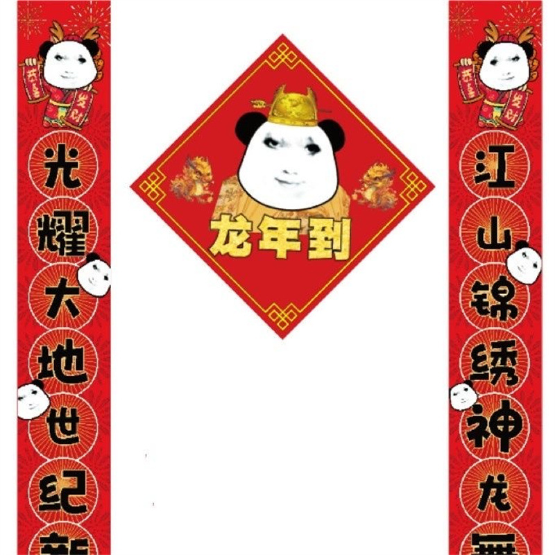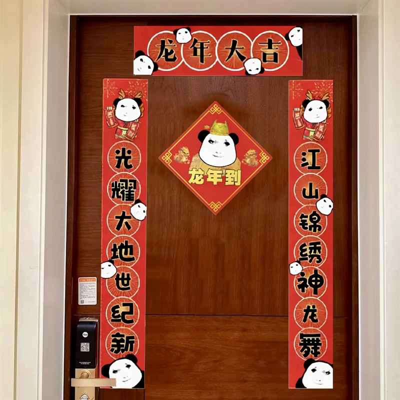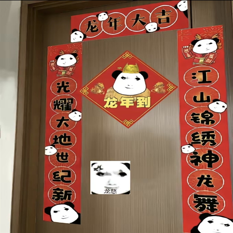 2024 드래곤 유타오 커플 봄 축제 용 그림 봄 축제 용 년 풀 세트 푸 캐릭터 도어 스티커 기숙사 원피스 전국 패션 재미