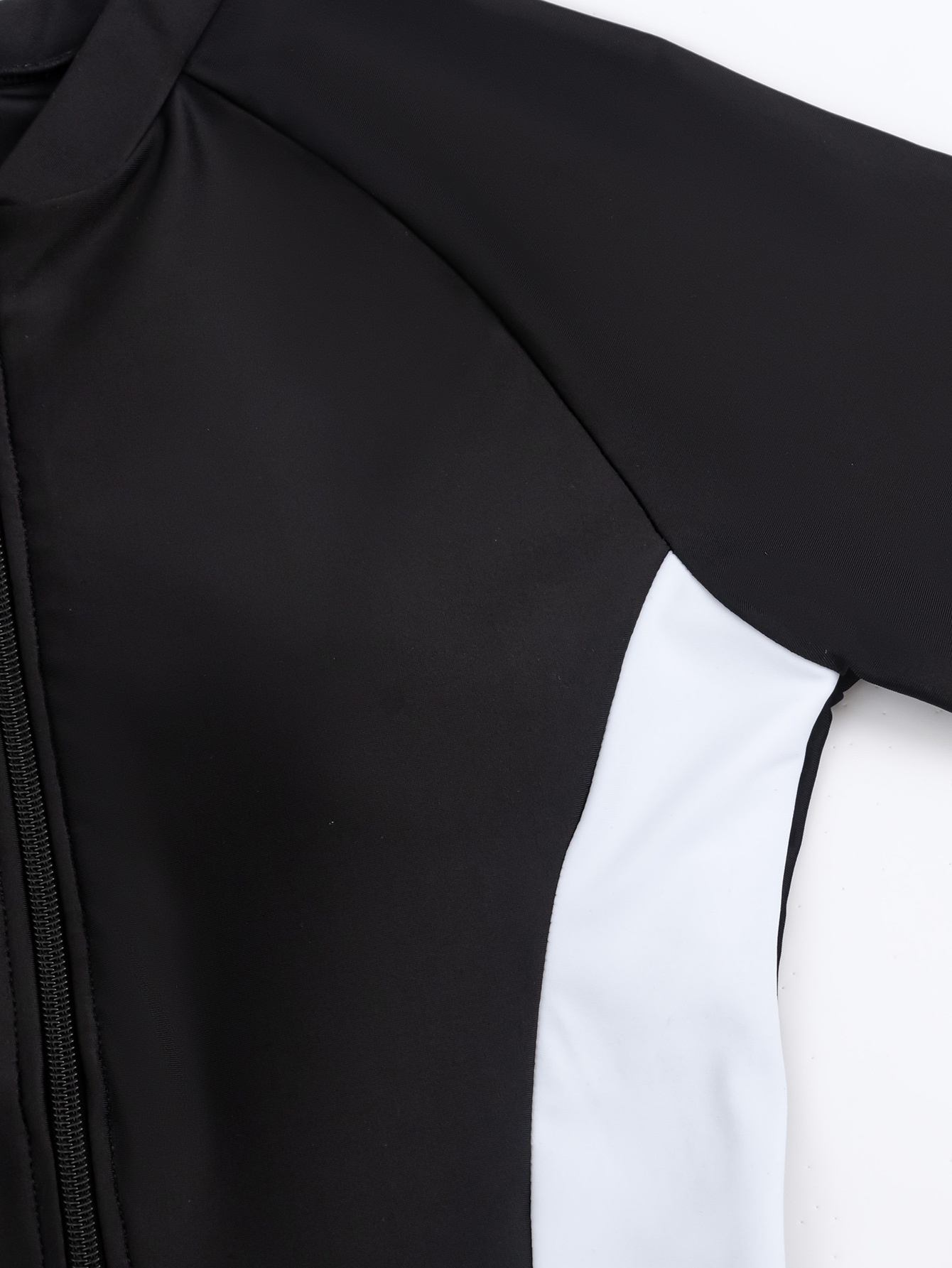 2023 유럽 및 미국 신상 서핑복 흑백 배색 반팔 지퍼 사각팬츠 타이트 서핑 비치 휴가 수영복