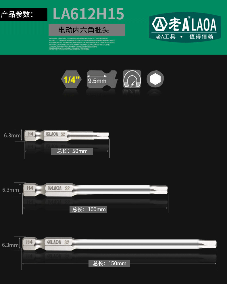 LAOA 오래된 LA619H15 10 PCS 1/4 "육각 소켓 드라이버 헤드 전기 드라이버 헤드 H1.5 * 50