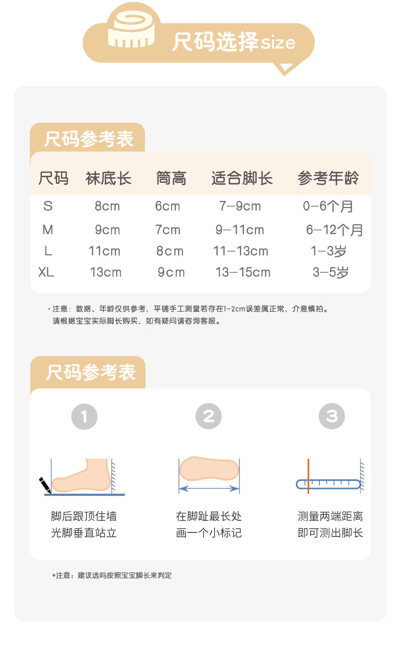• S 양말 바닥 길이 8cm, 권장 0-6 개월