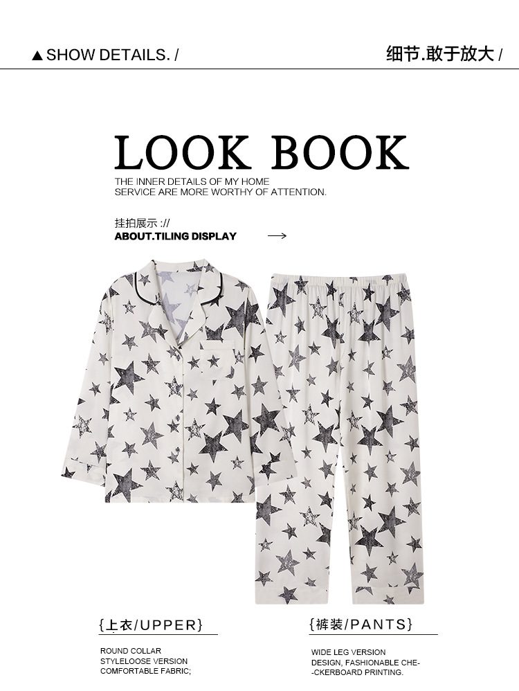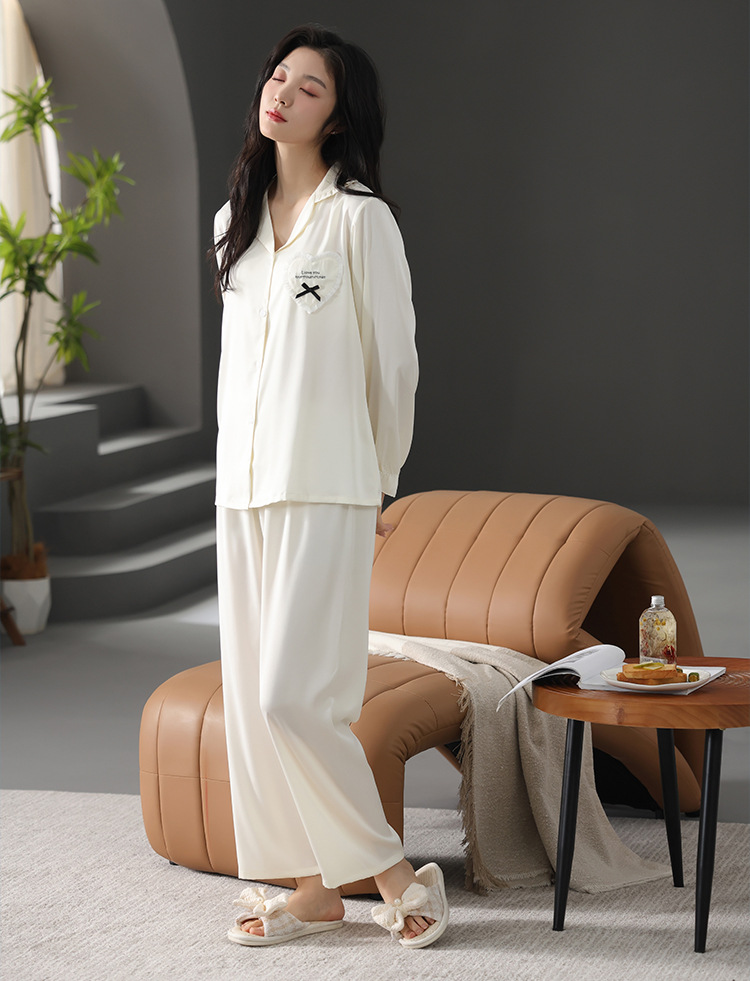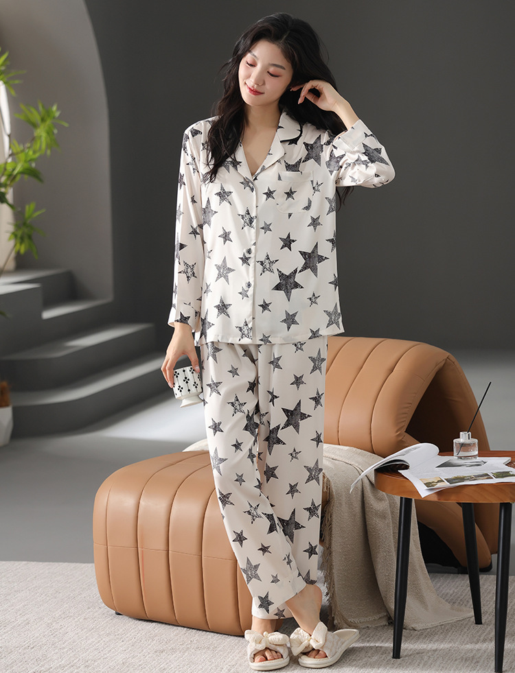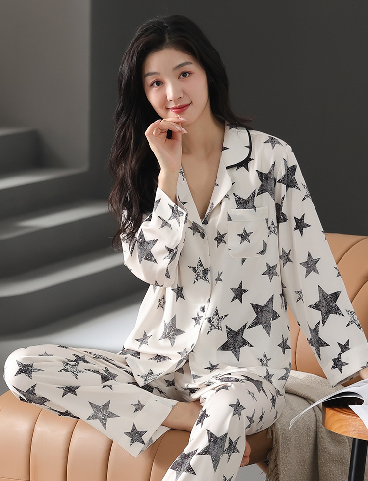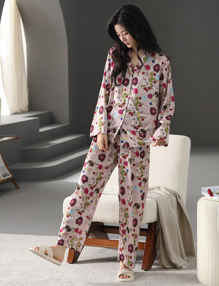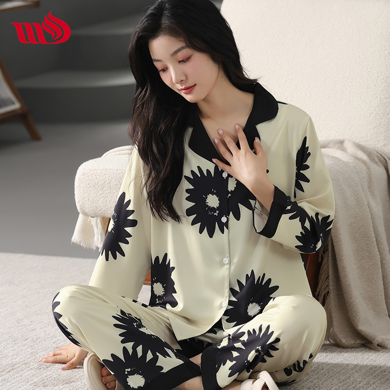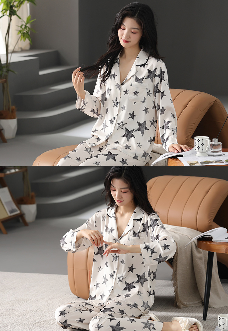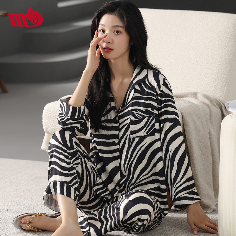 Longshijia 아이스 실크 잠옷 봄과 가을 얇은 긴 소매 새로운 여성의 인공 실크 고급 가정복 세트스토어 가기