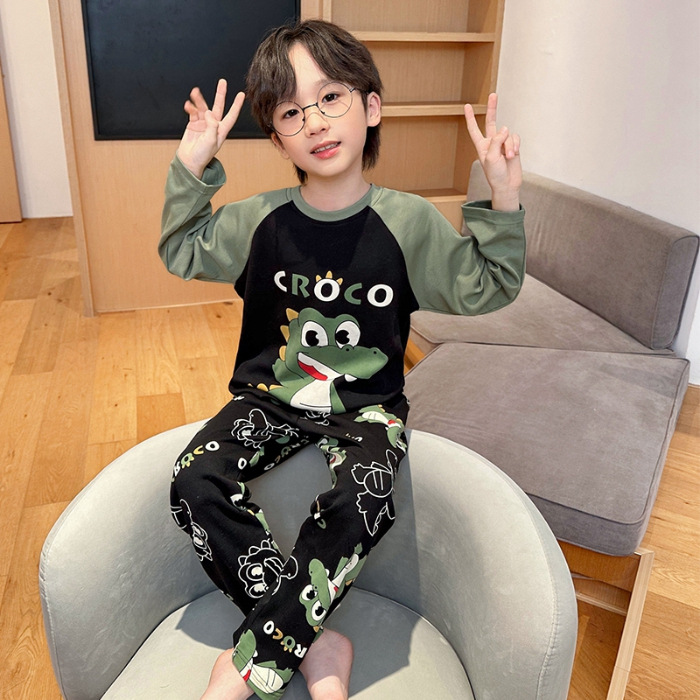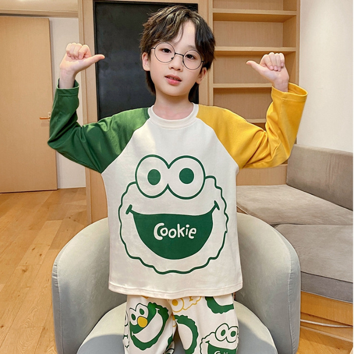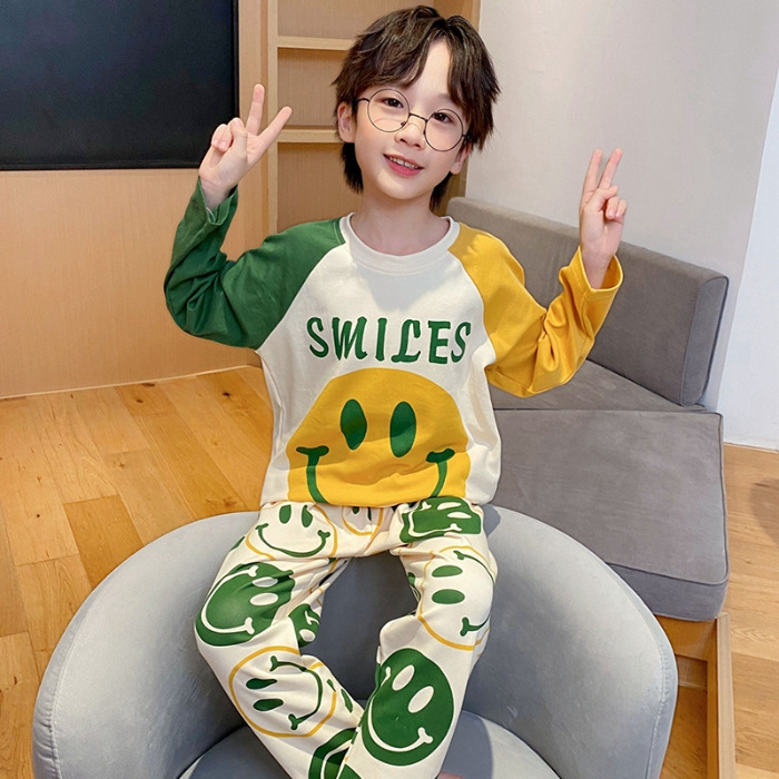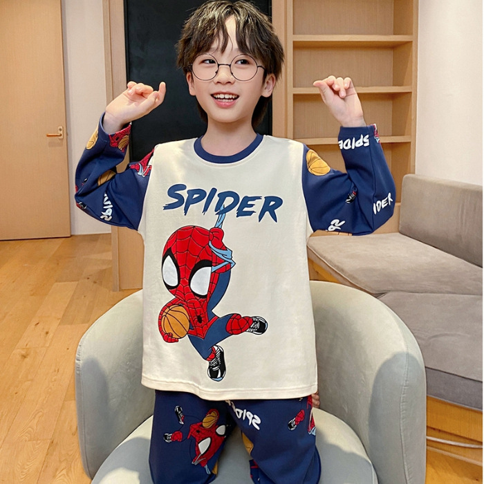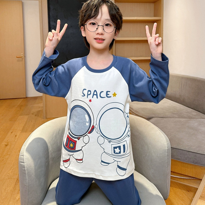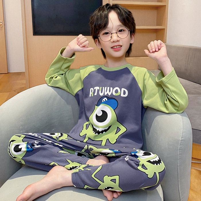 소년 잠옷 어린이 긴팔 바지면 둥근 목 세트 봄과 가을 얇은 만화 캐주얼 홈 착용 잠옷