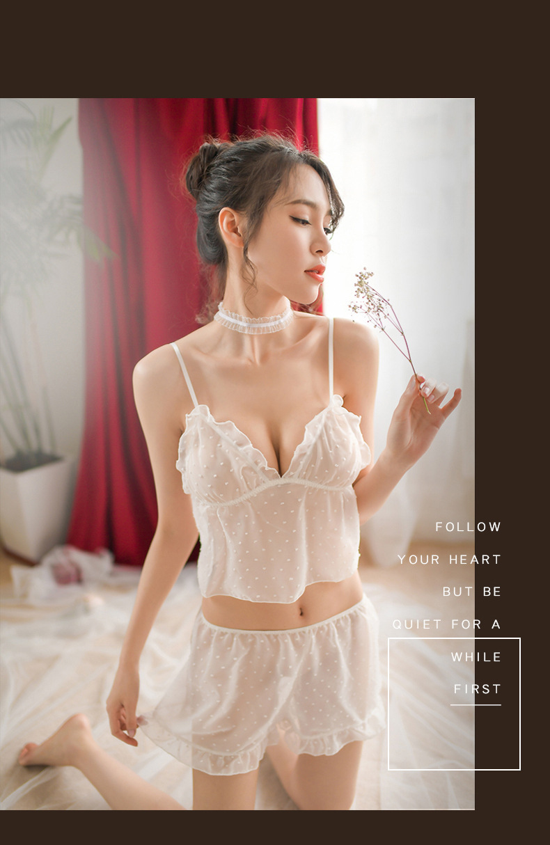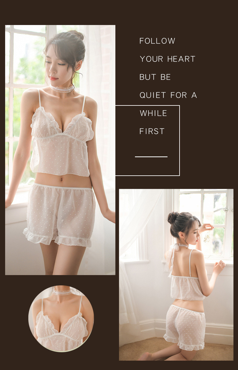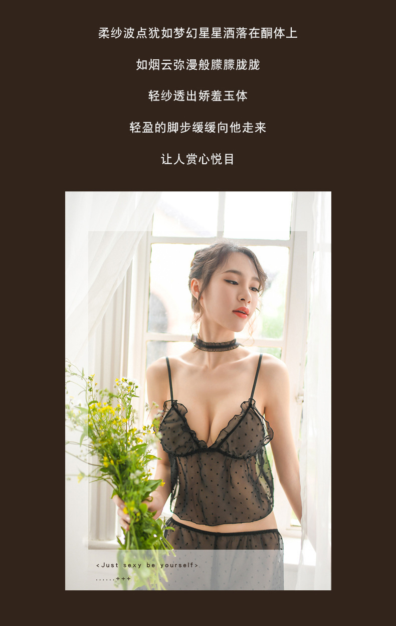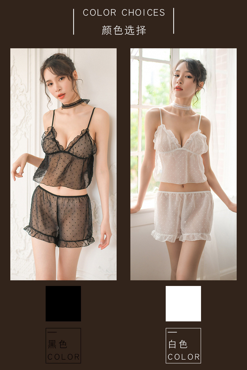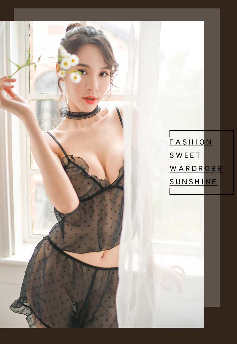 여성스럽고 유혹적인 섹시 속옷, 쉬폰 도트무늬 슬립, 시스루 귀여운 소녀풍 홈웨어 세트, 얇고 투명한 디자인스토어 가기