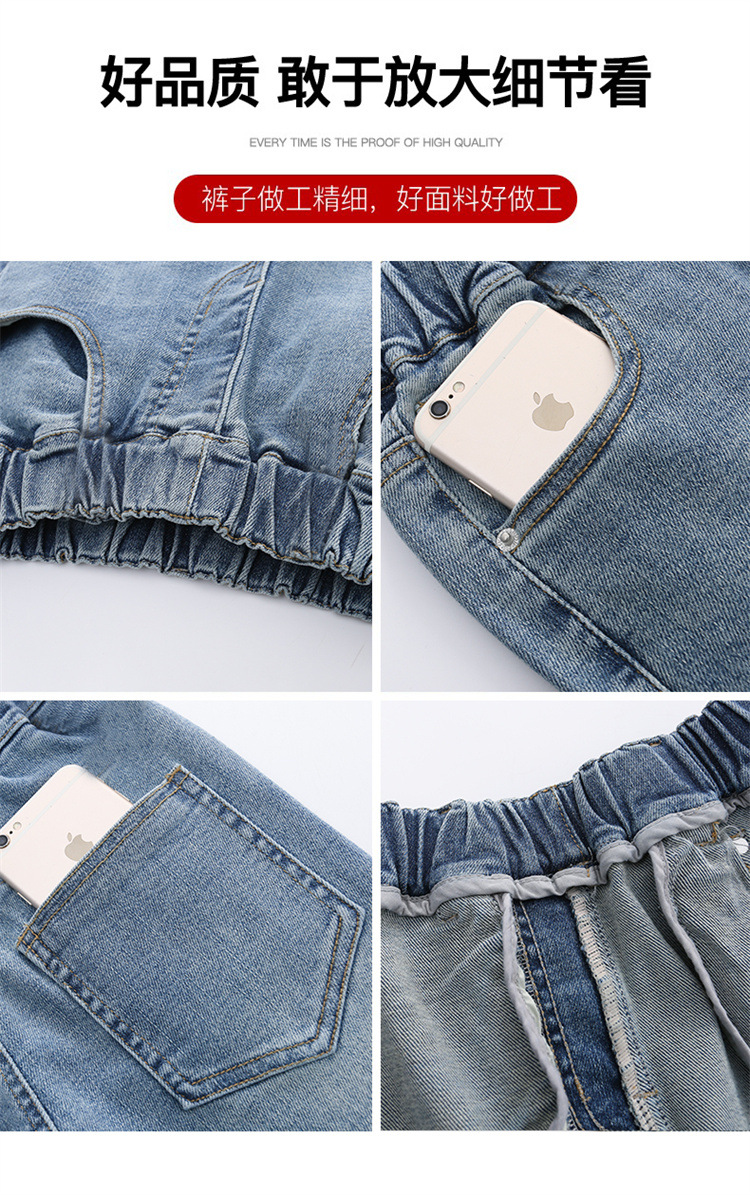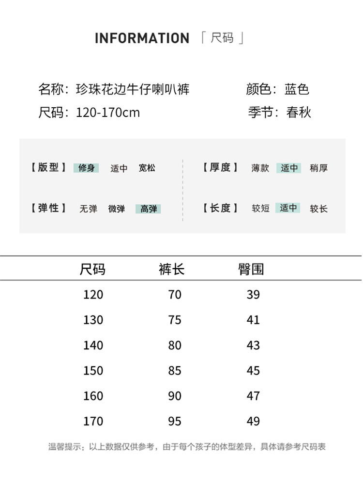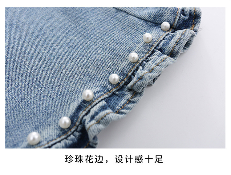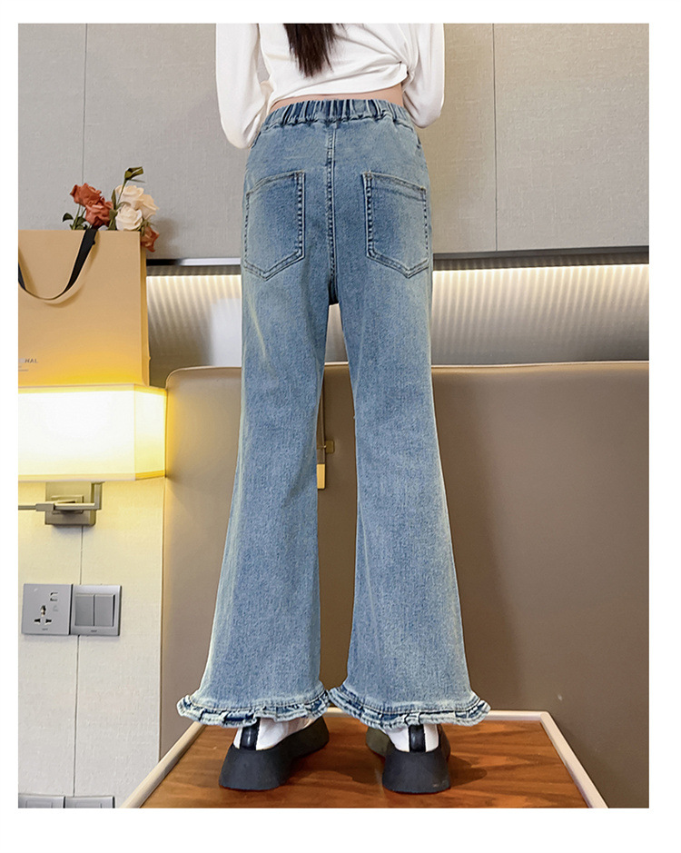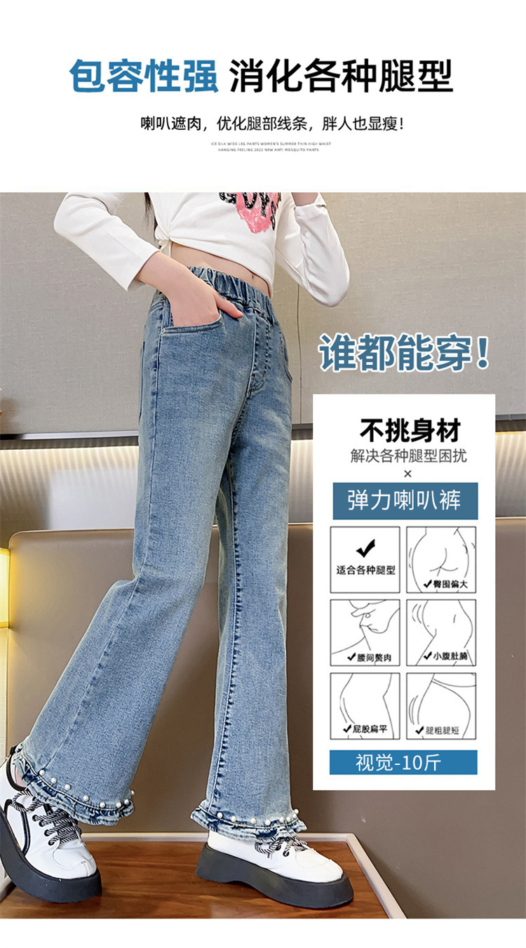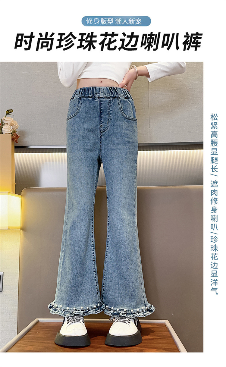 소녀의 새 봄 옷 어린이 데님 플레어 바지 한국 스타일 구슬 청바지 슬림 핏 어린이 바지 대외 무역