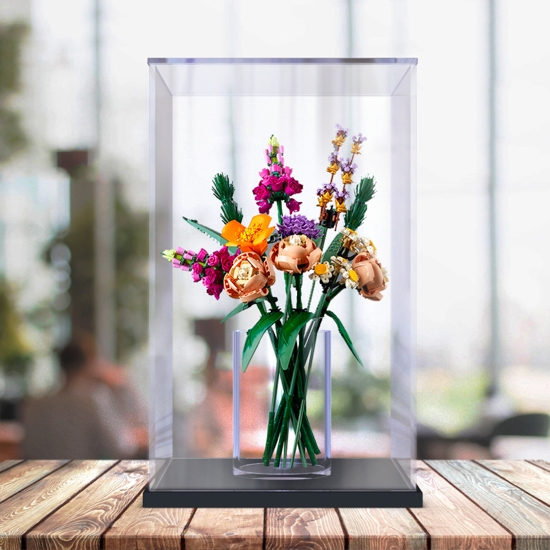 레고 10280 꽃 아크릴 먼지 커버 꽃 부케 장미 빌딩 블록 모델 디스플레이 상자 투명 커버
