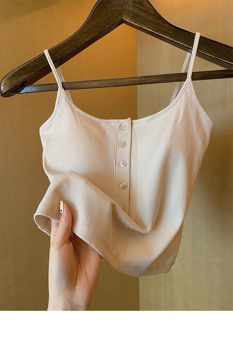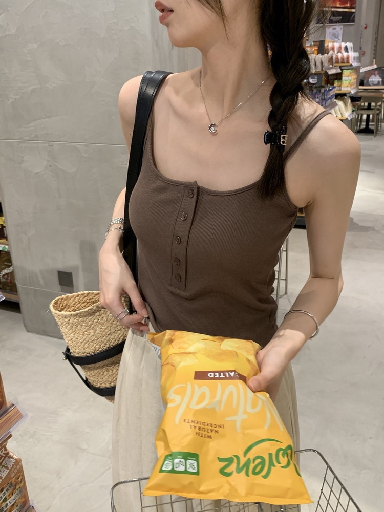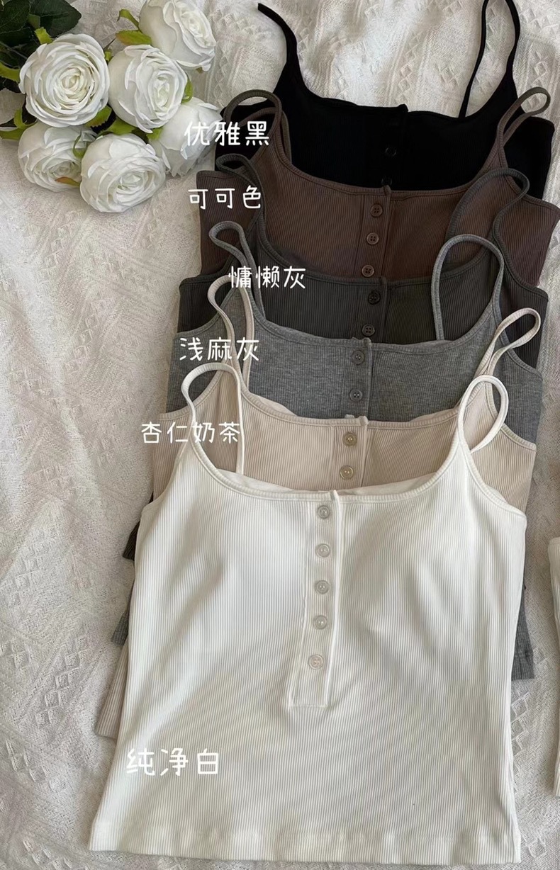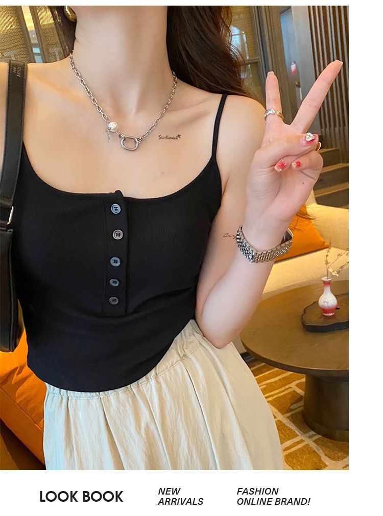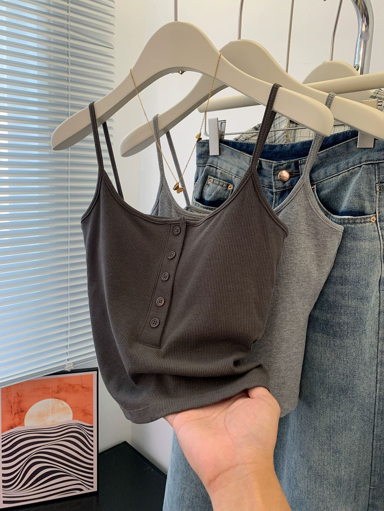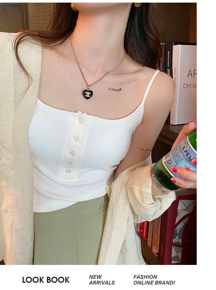 8820 # 순수한 욕망 버튼 캐미솔 뷰티 백 조끼 서양식 올 매치 아우터웨어 탑 슬림 슬리밍 스레드 고정 컵