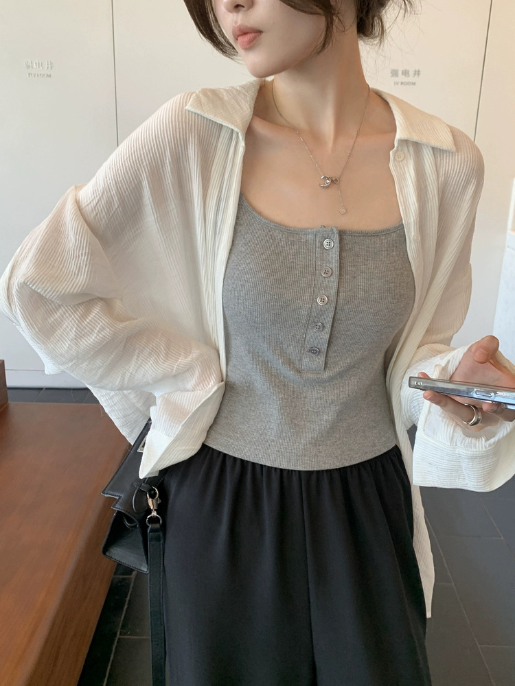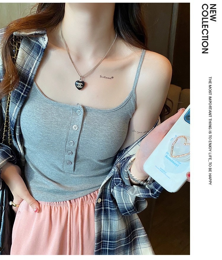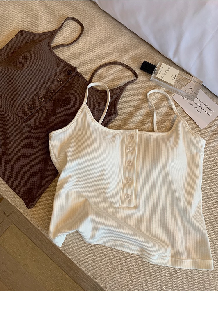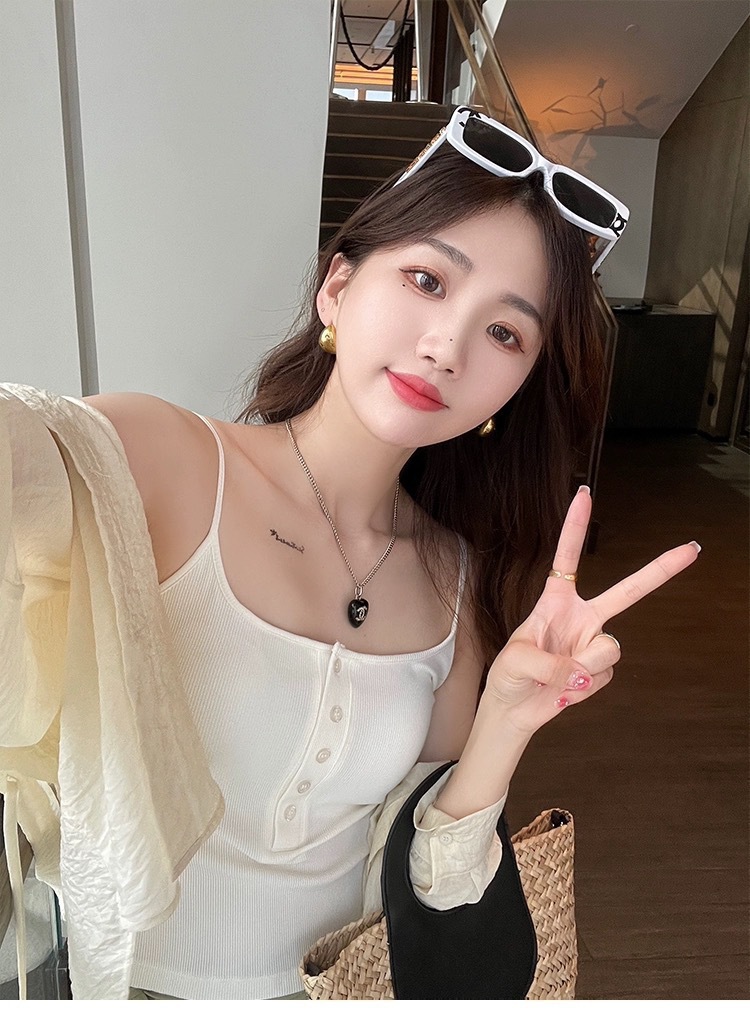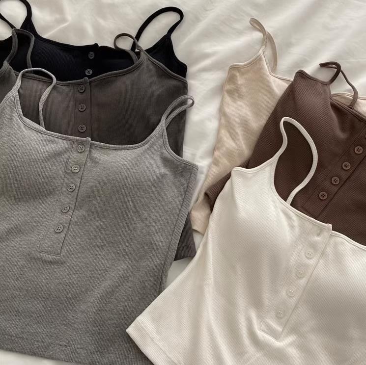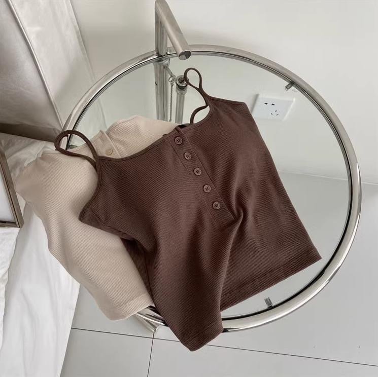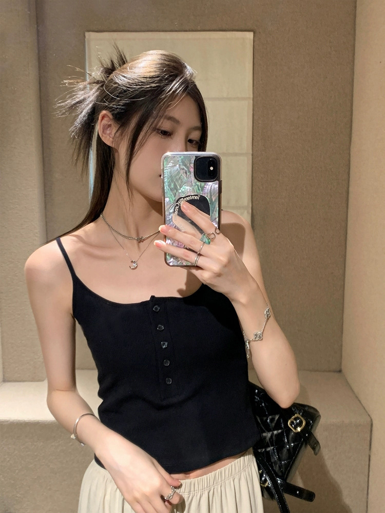 8820 # 순수한 욕망 버튼 캐미솔 뷰티 백 조끼 서양식 올 매치 아우터웨어 탑 슬림 슬리밍 스레드 고정 컵