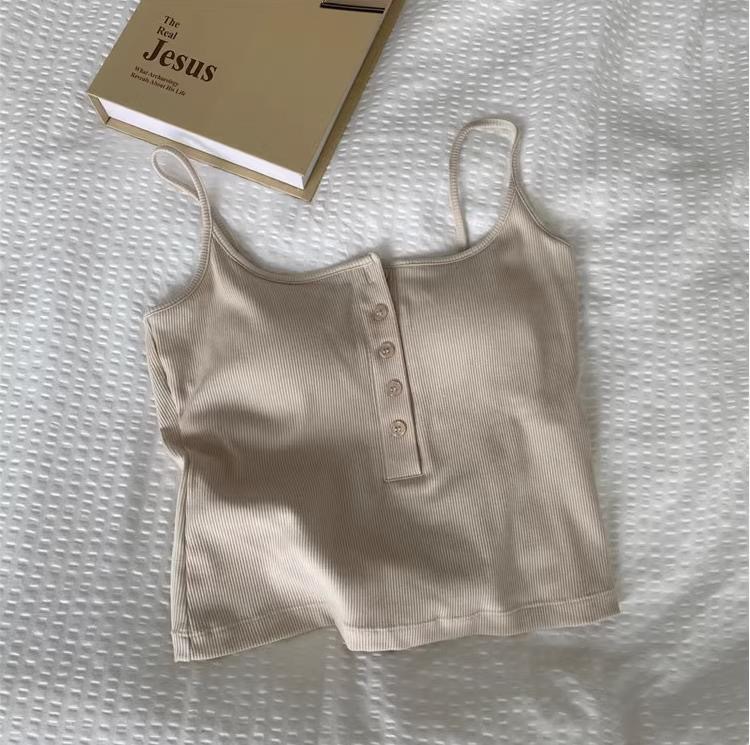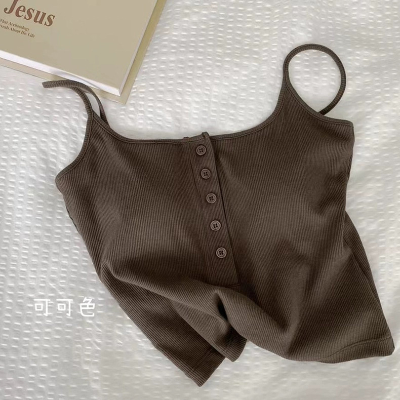 8820 # 순수한 욕망 버튼 캐미솔 뷰티 백 조끼 서양식 올 매치 아우터웨어 탑 슬림 슬리밍 스레드 고정 컵스토어 가기