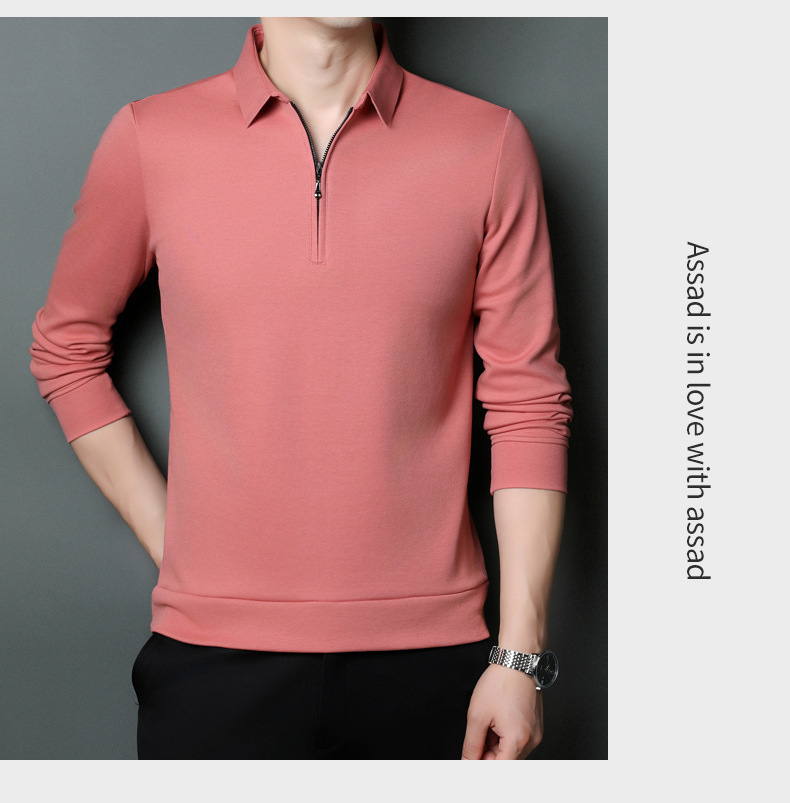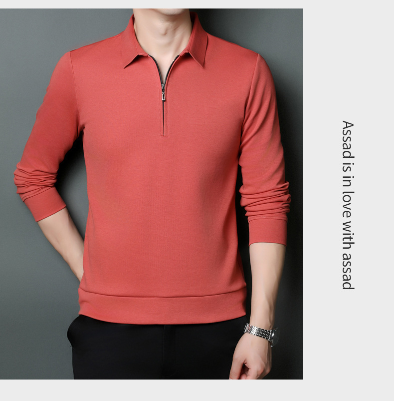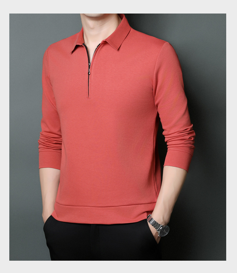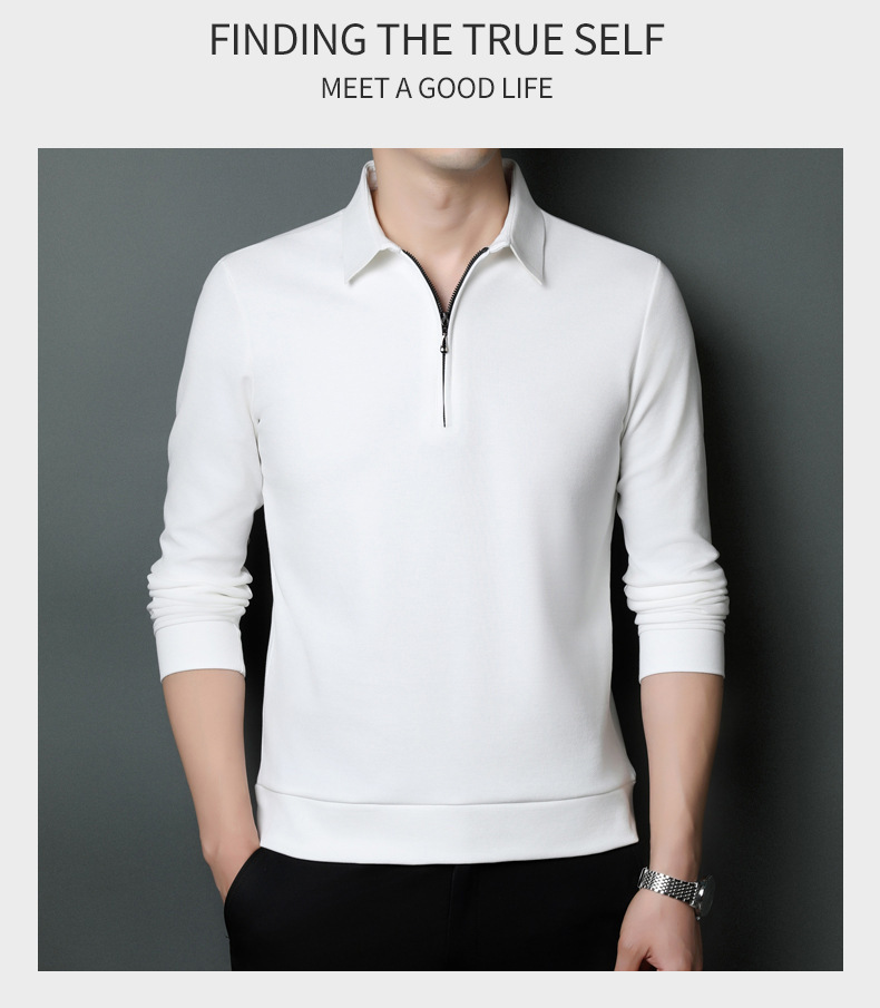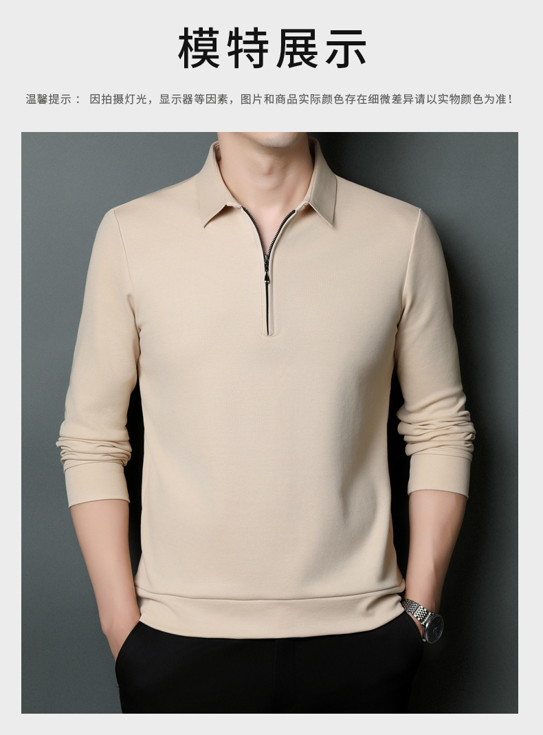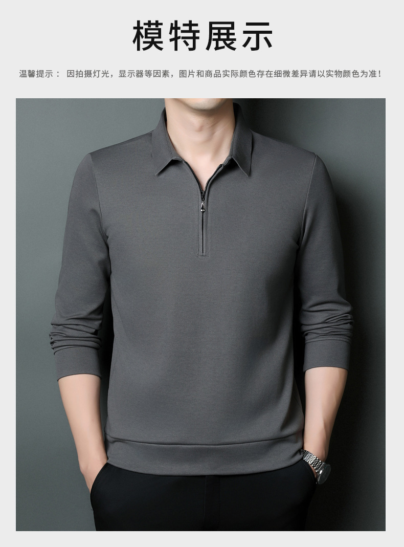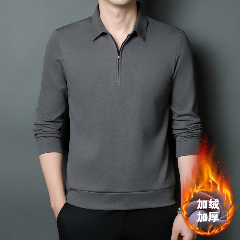 2023 가을과 겨울 남성의 새로운 긴팔 티셔츠 단색 반 지퍼 기모 두꺼운 패션 모든 매칭 젊고 중년 탑