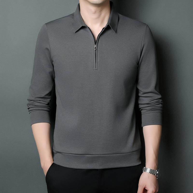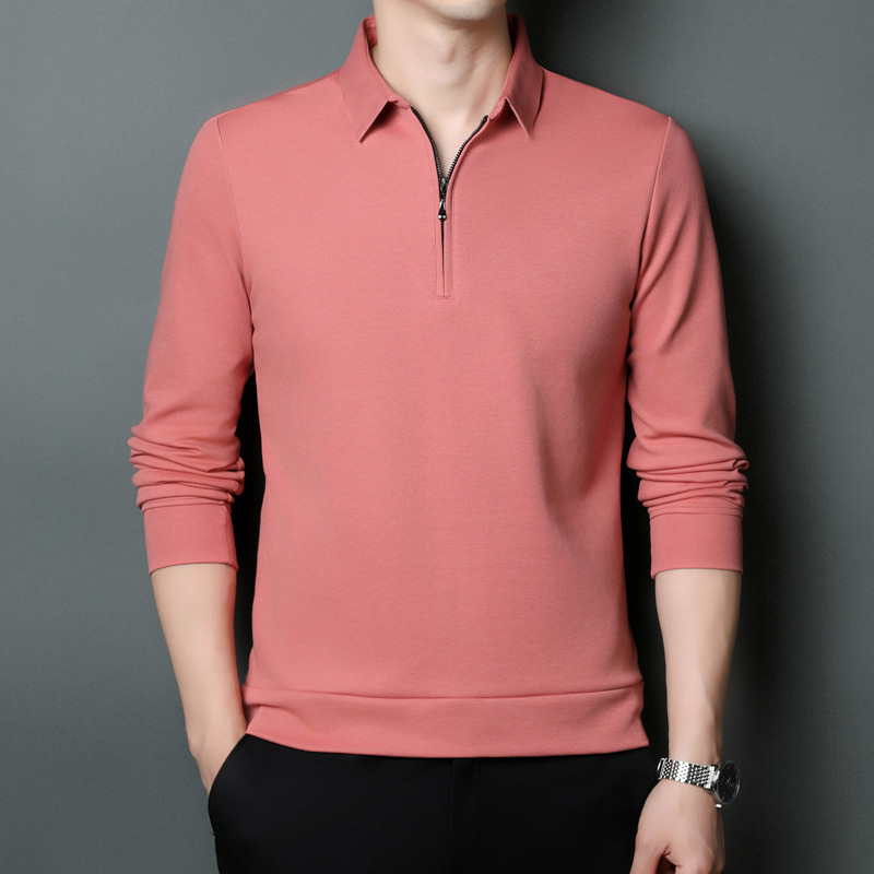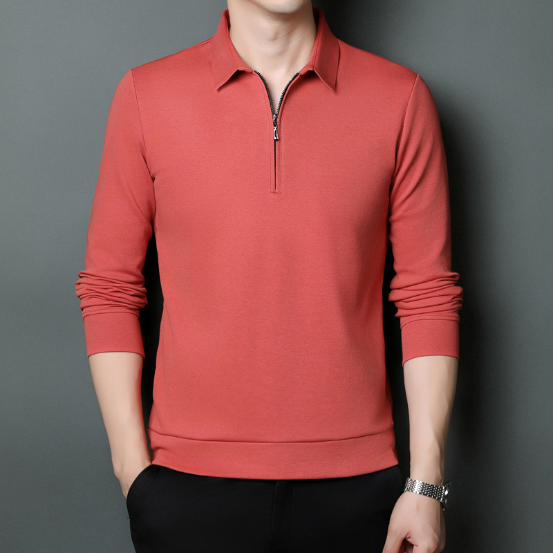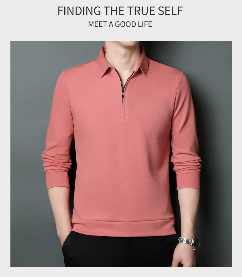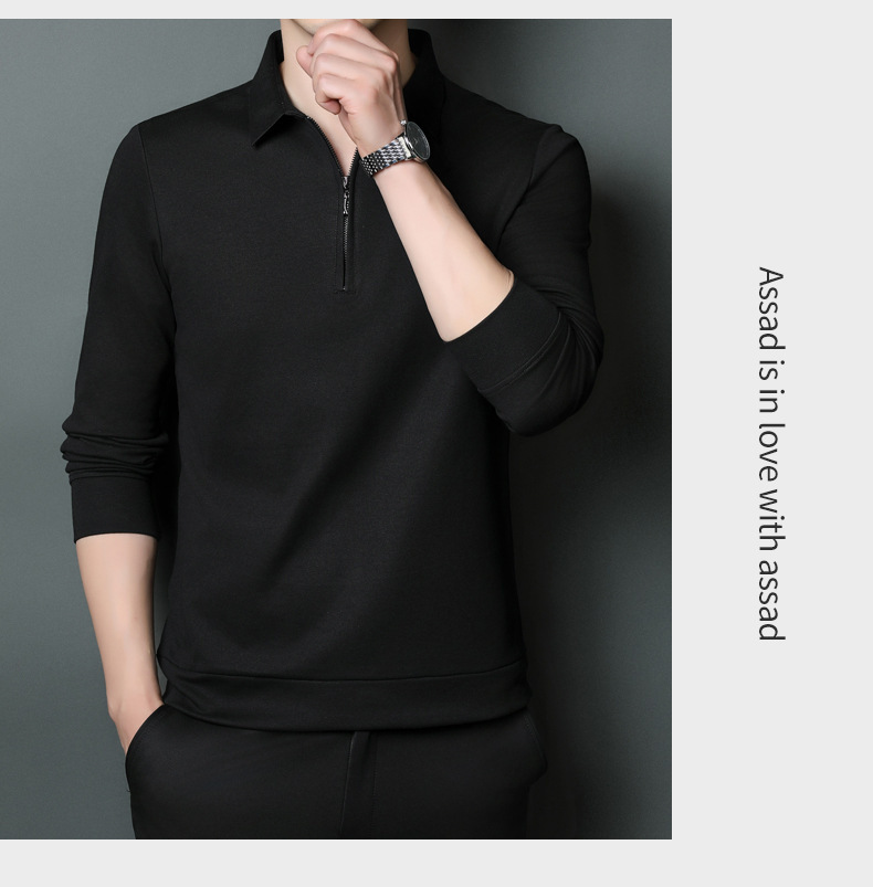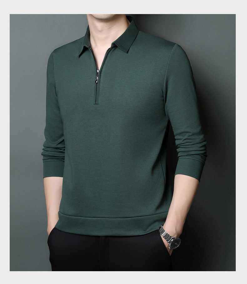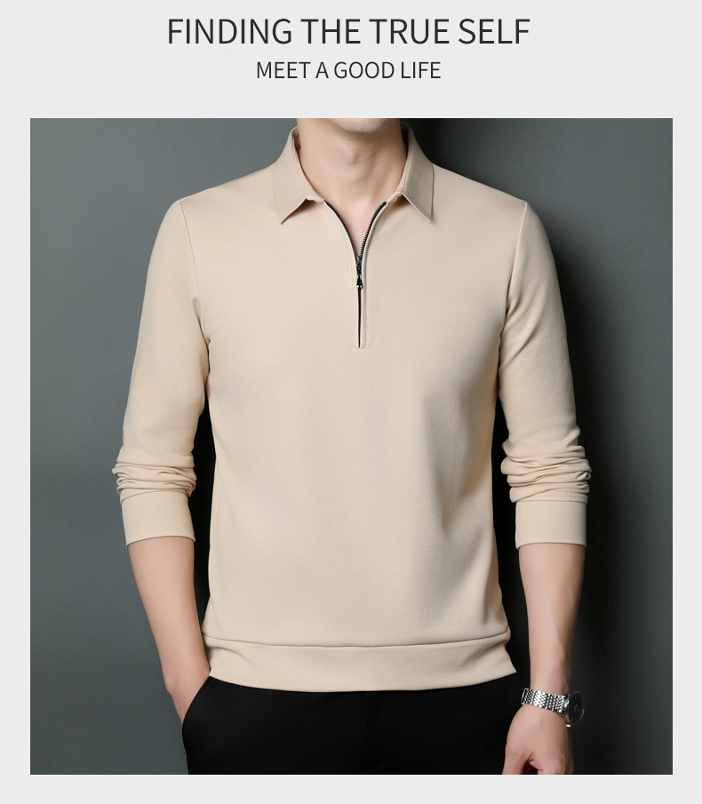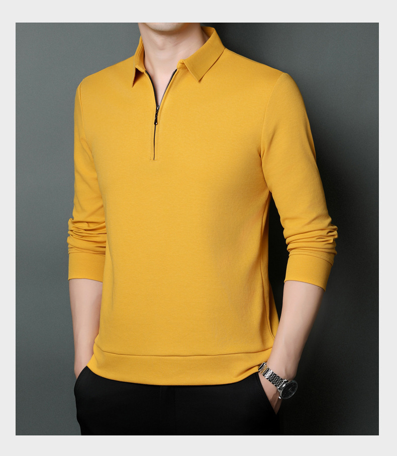 2023 가을과 겨울 남성의 새로운 긴팔 티셔츠 단색 반 지퍼 기모 두꺼운 패션 모든 매칭 젊고 중년 탑