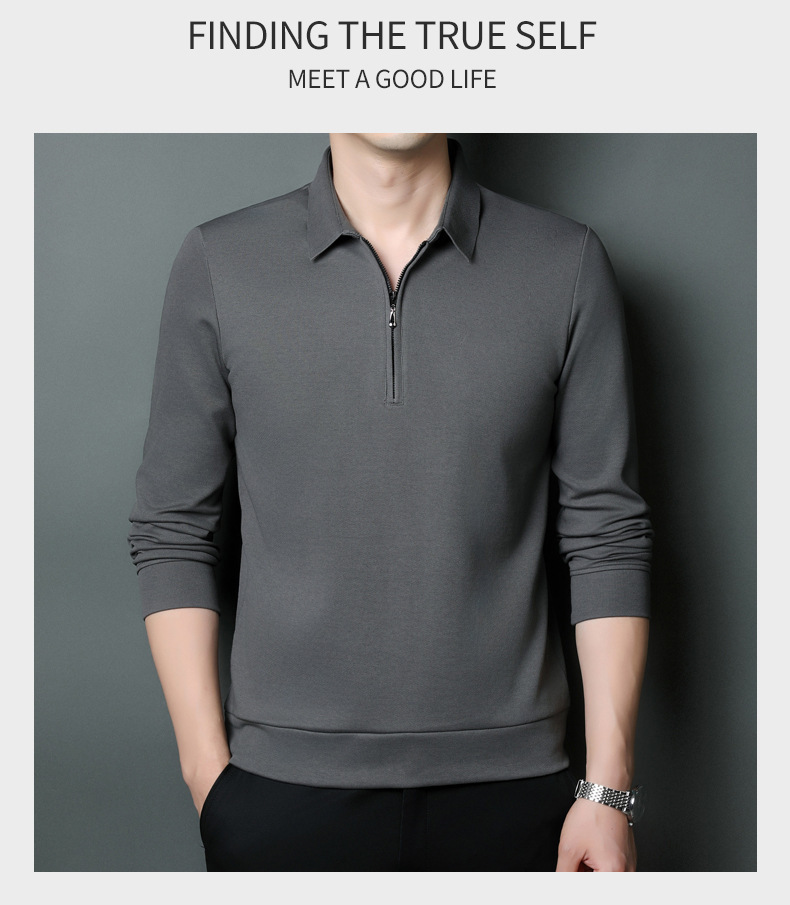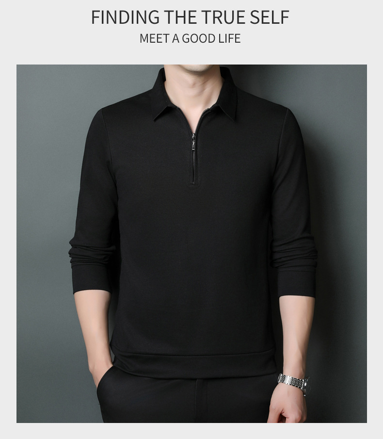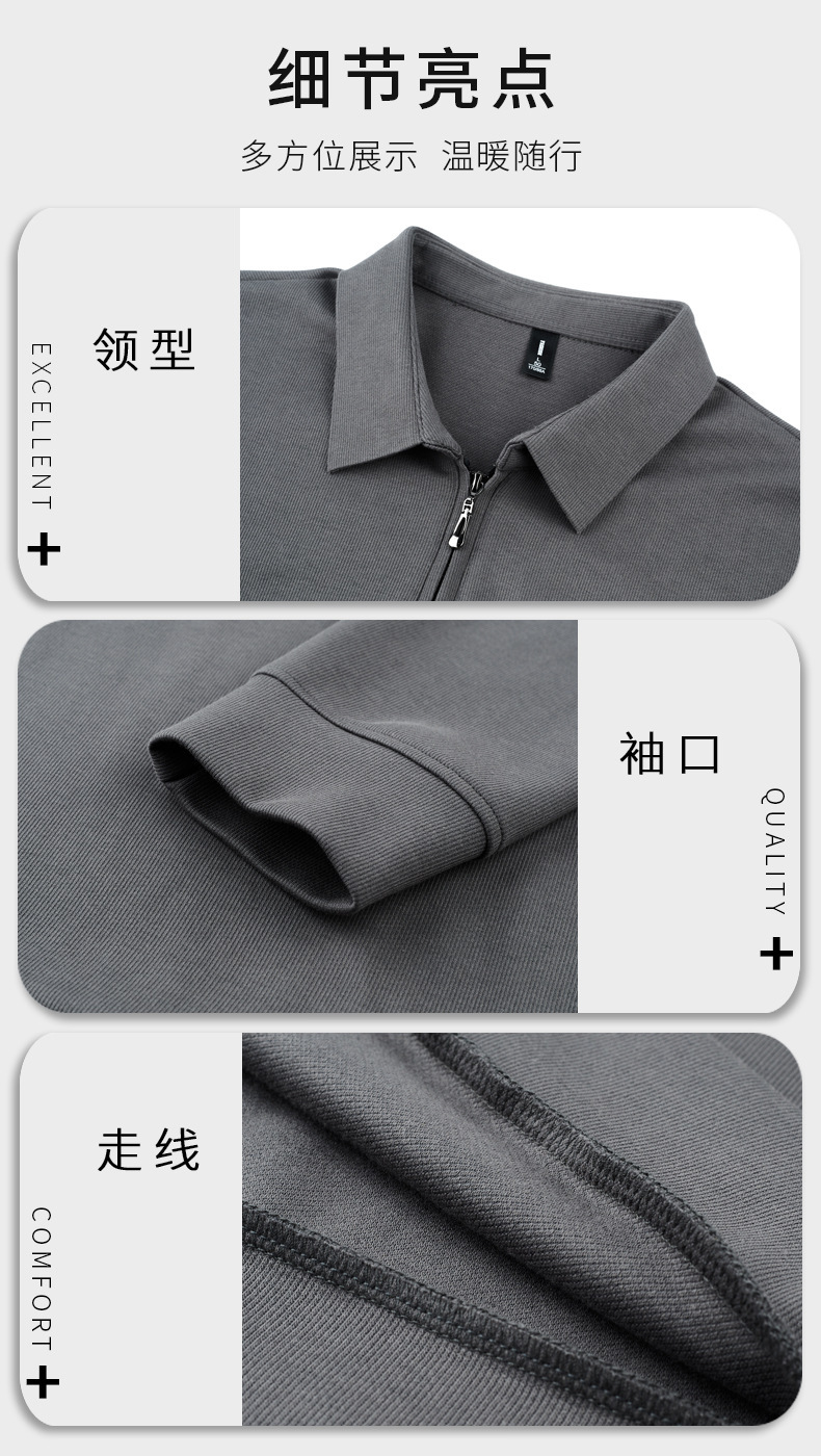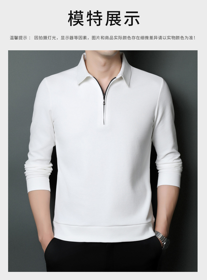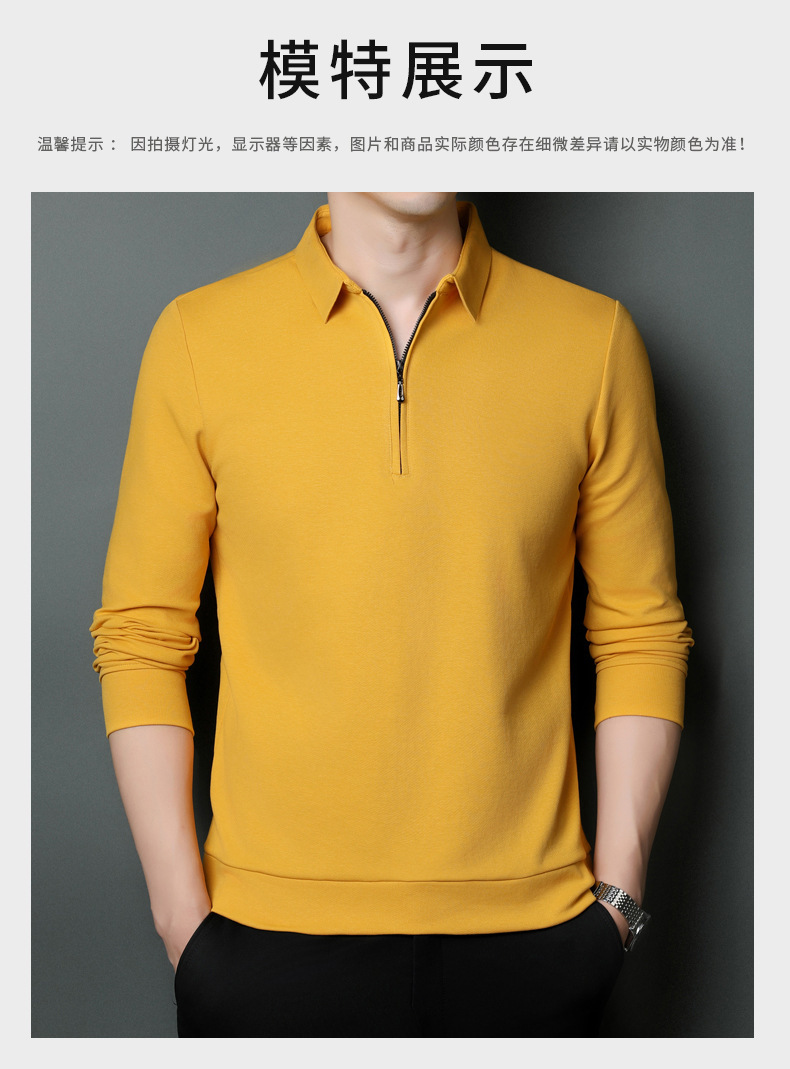 2023 가을과 겨울 남성의 새로운 긴팔 티셔츠 단색 반 지퍼 기모 두꺼운 패션 모든 매칭 젊고 중년 탑스토어 가기