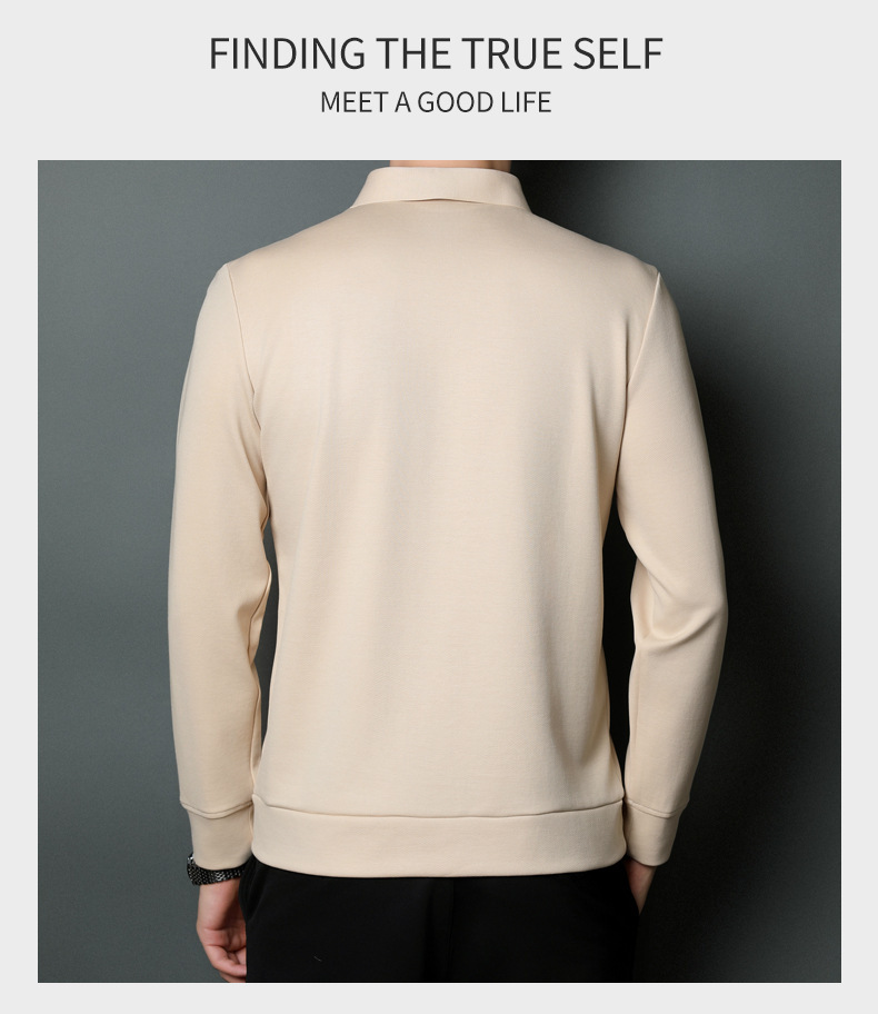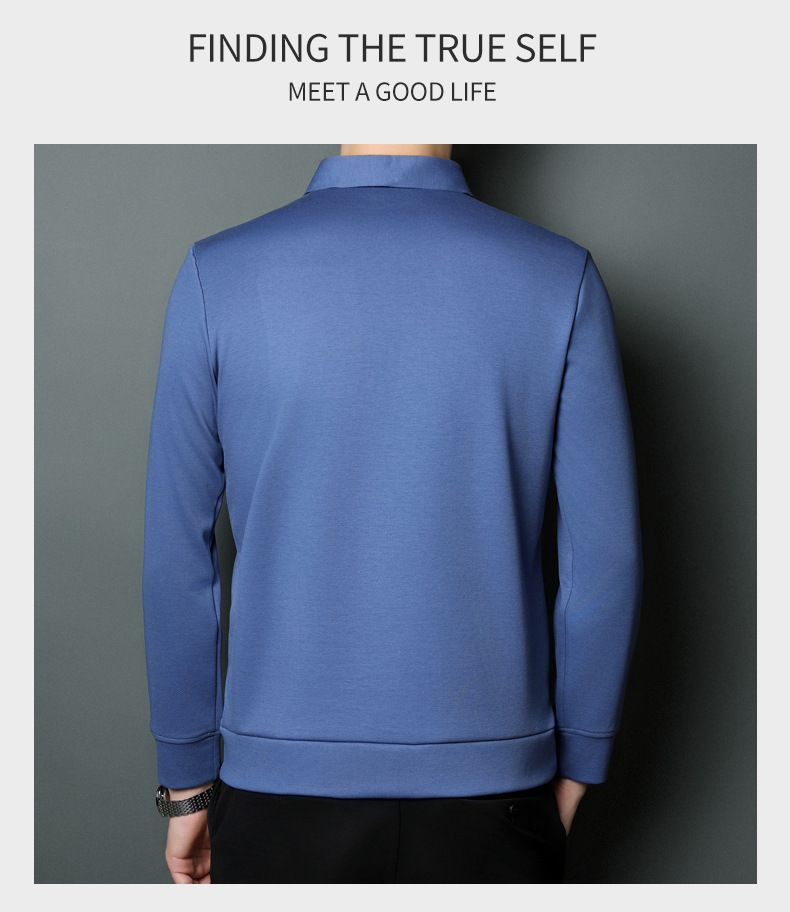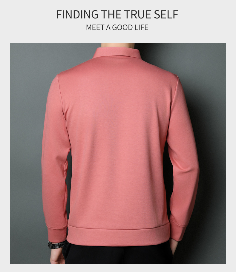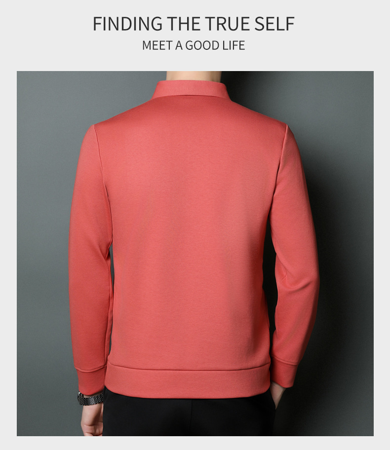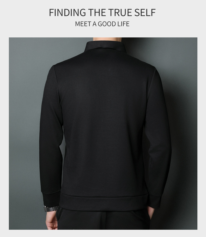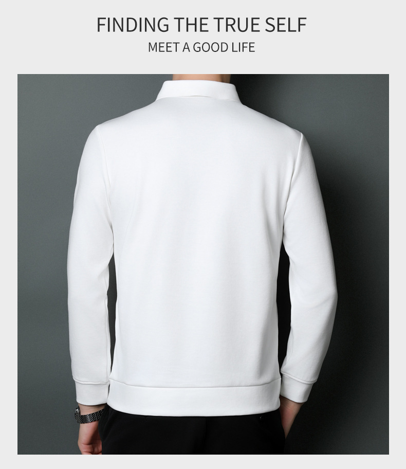 2023 가을과 겨울 남성의 새로운 긴팔 티셔츠 단색 반 지퍼 기모 두꺼운 패션 모든 매칭 젊고 중년 탑스토어 가기