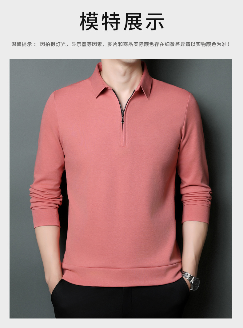 2023秋冬季男装新款长袖T恤纯色半拉链加绒加厚时尚百搭中青年上