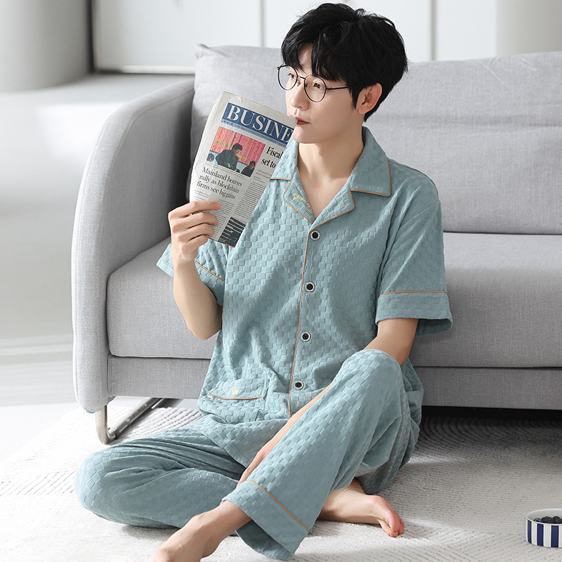 겉옷 심플한 캐주얼 6040 남성용 잠옷 봄 · 가을 반팔 바지 헐렁한 플러스 사이즈 홈웨어 세트스토어 가기