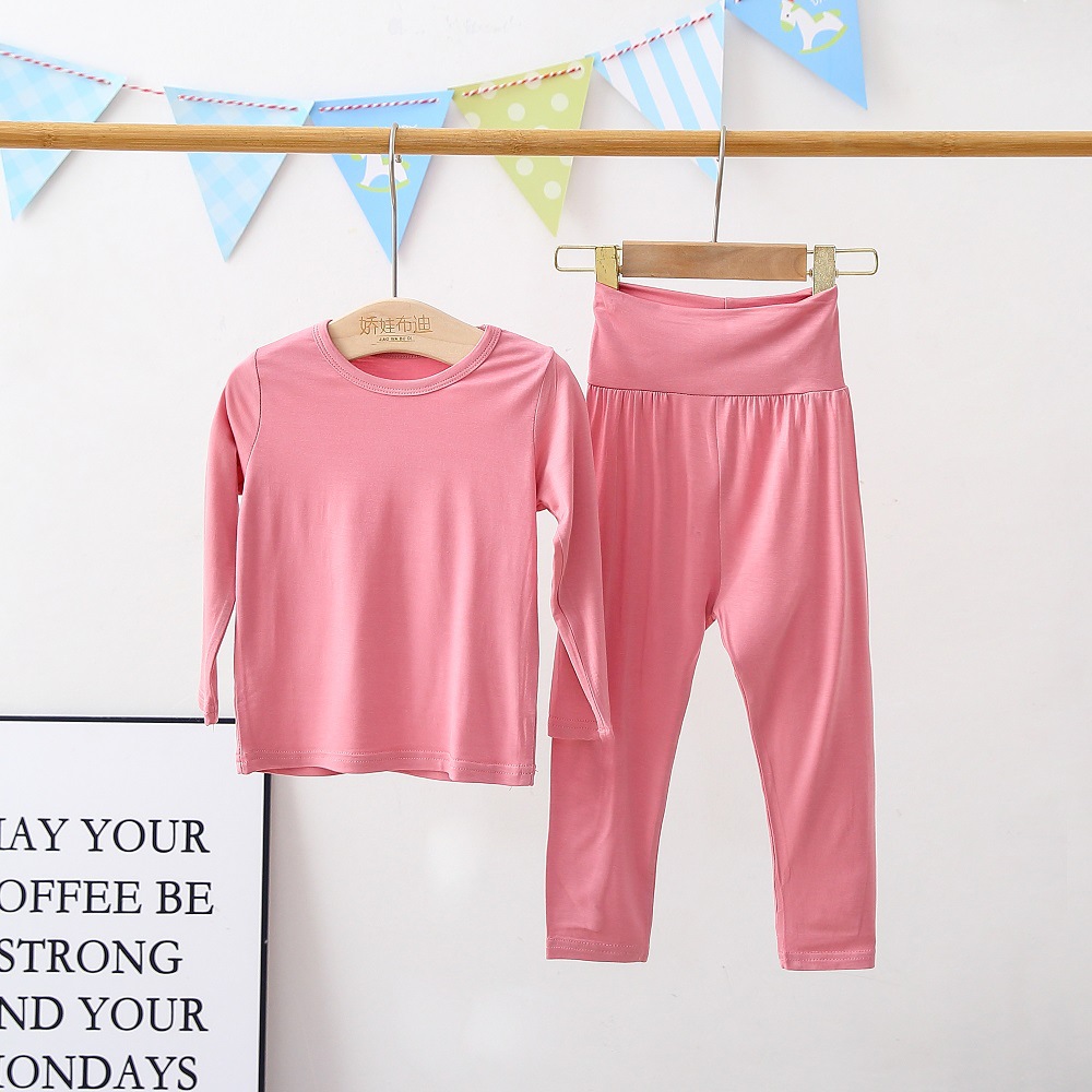 어린이 잠옷 모달 봄과 가을 높은 허리 배 보호 홈 착용 소년 소녀 아기 가을 옷 긴 바지 속옷 세트