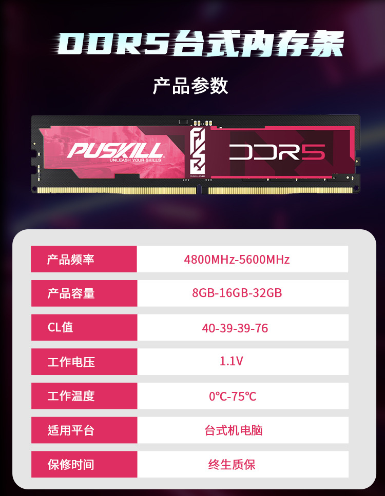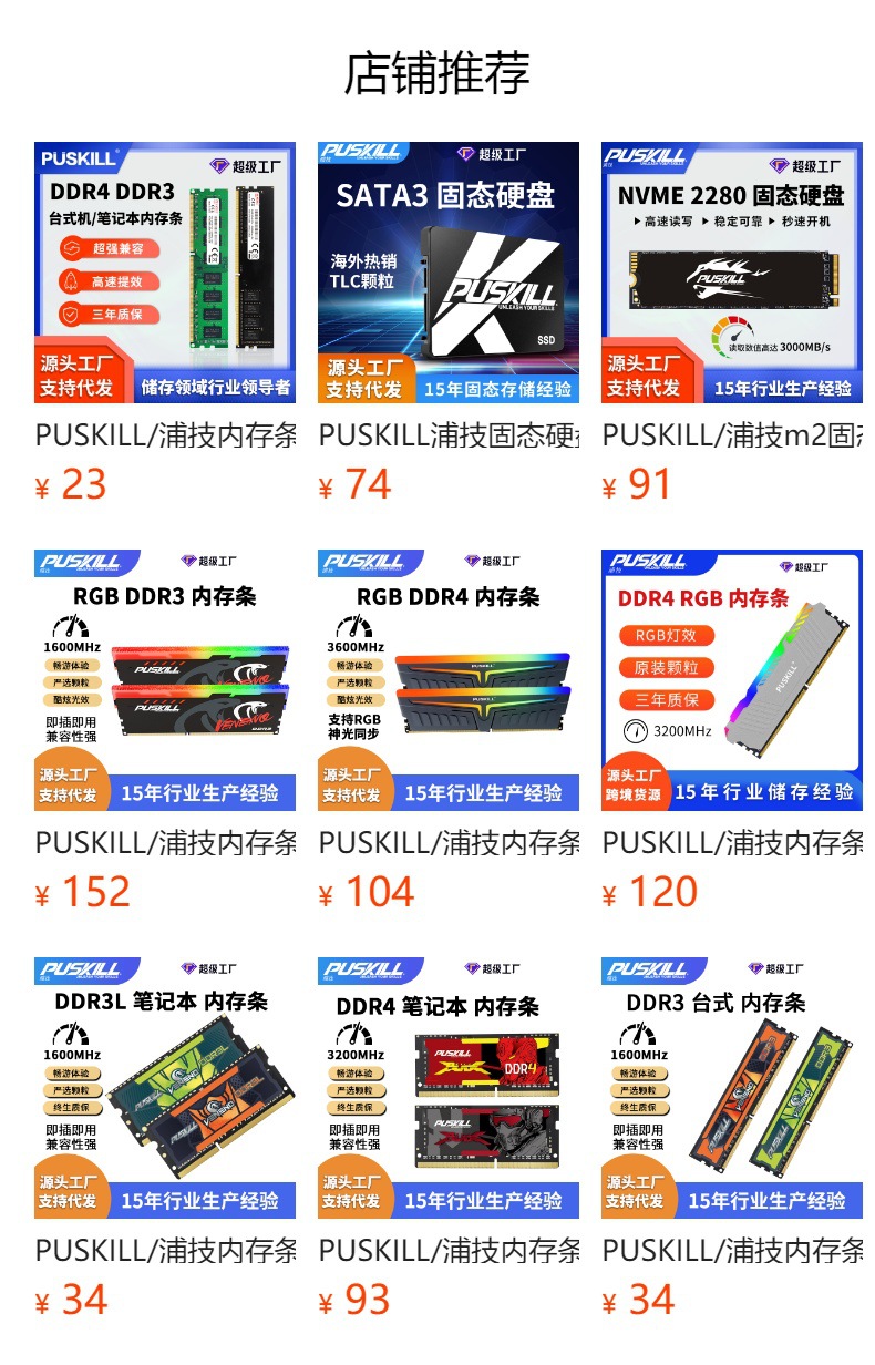 PUSKILL/푸지 메모리 스틱 DDR58G16G48005600 데스크탑 컴퓨터 메모리 스틱 해외 도매스토어 가기