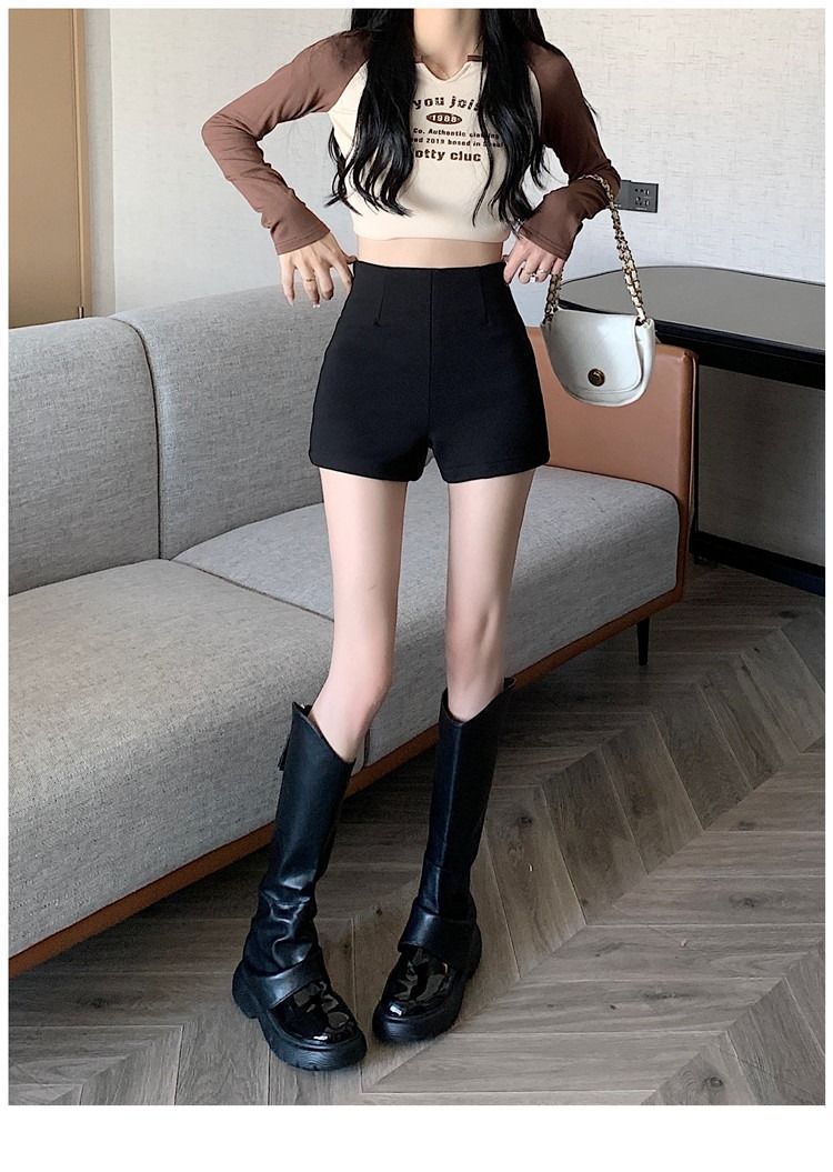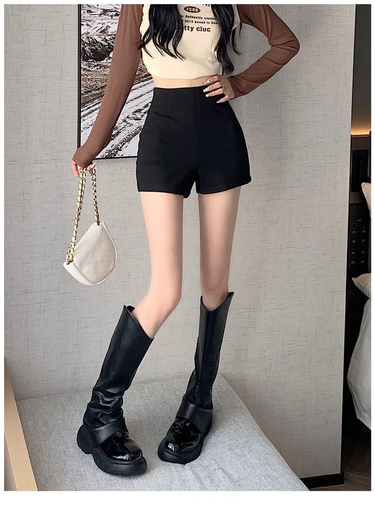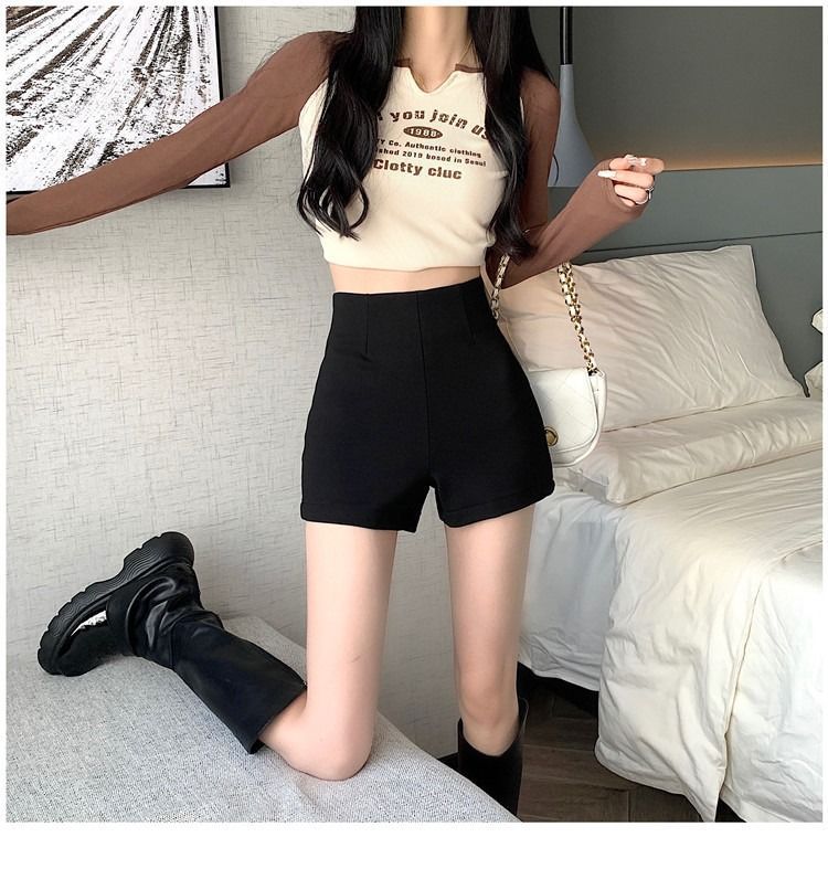 공장 판매 높은 허리 검은 반바지 2024 봄과 여름 세트 새로운 야외 착용 뜨거운 소녀 착용 매치 · 슬리밍 레깅스 올매치스토어 가기