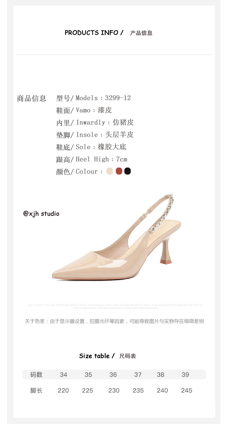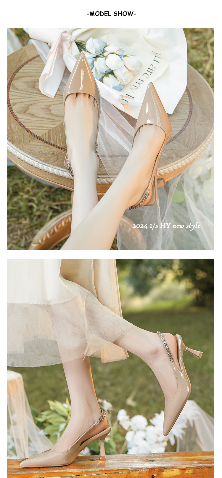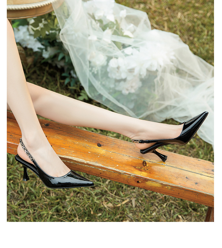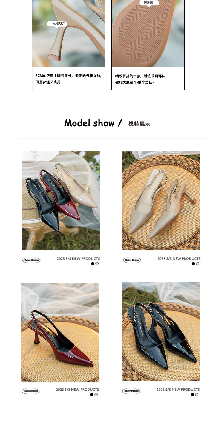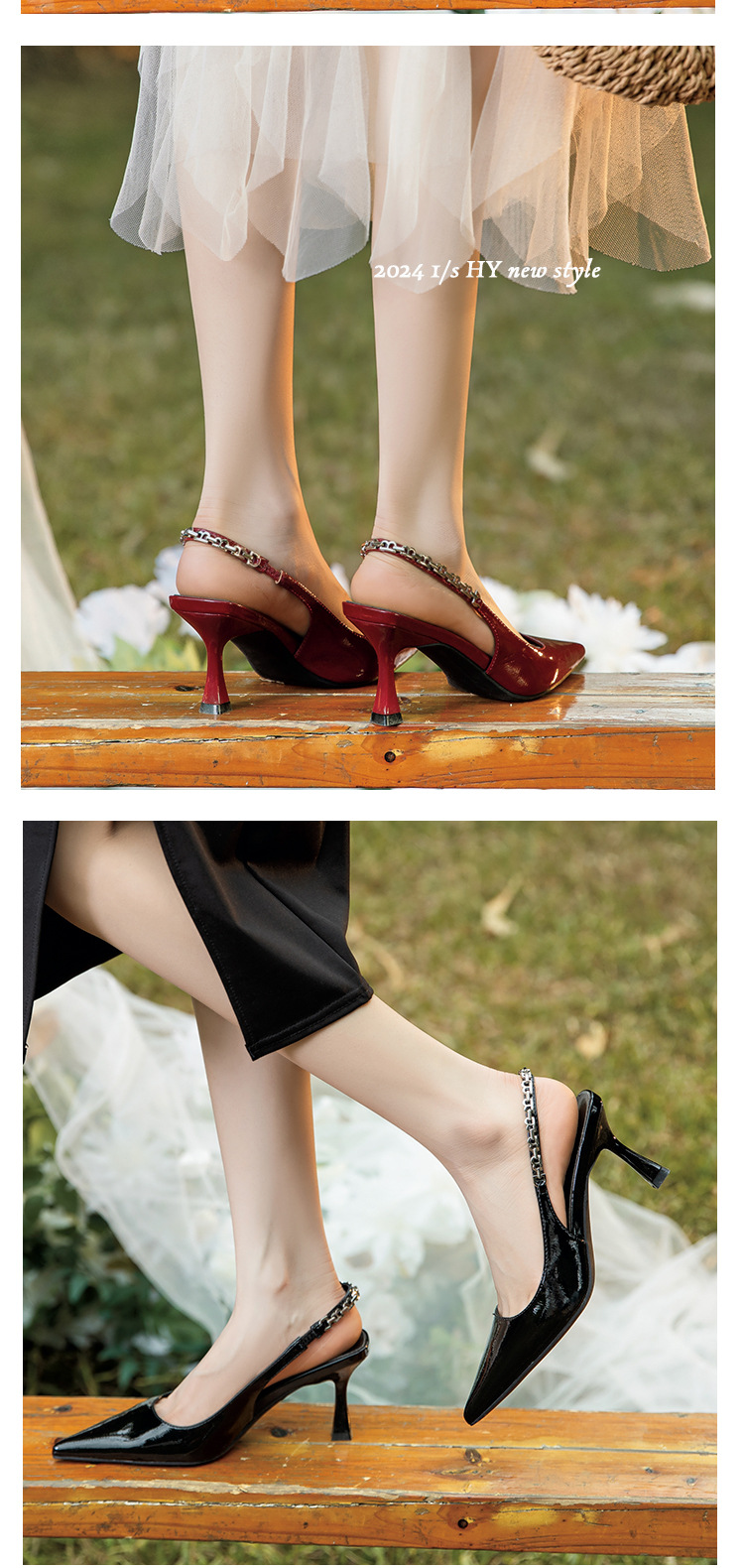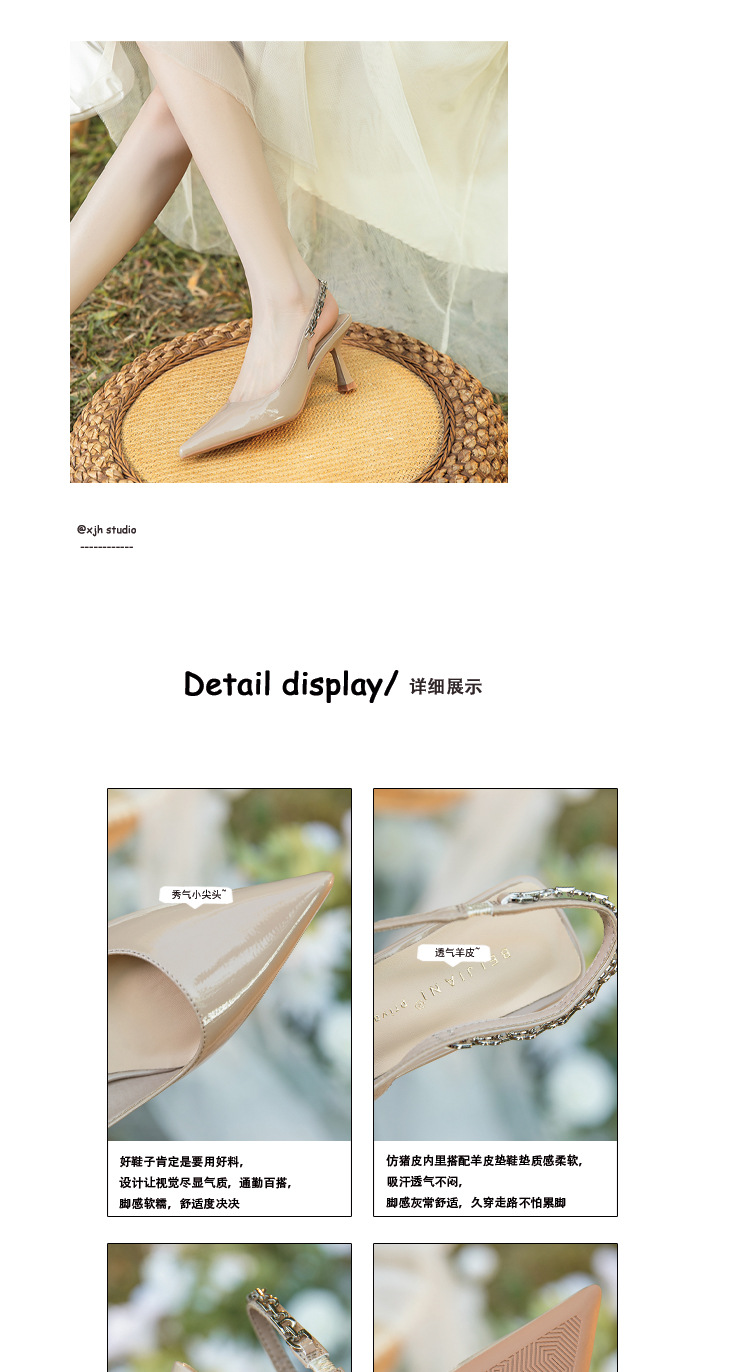 3299-12 프랑스 디자인 철 체인 장식 뾰족한 스틸레토 하이힐 싱글 레이어 신발 여성용 원 스트랩 우아한 닫힌 발가락 샌들스토어 가기