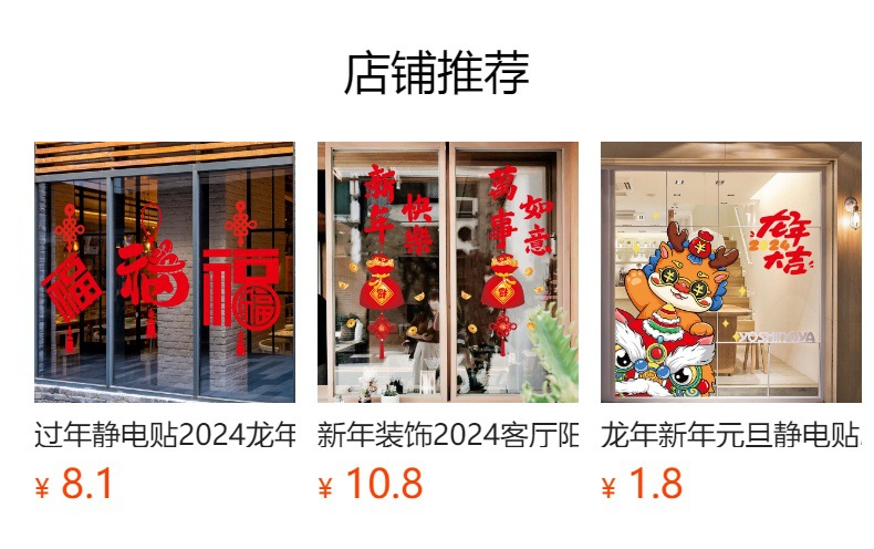 새해 장식 창 스티커 2024 용 년 새로운 중국 창조적 인 푸 캐릭터 스티커 새해 유리문과 창문 원활한 정적 스티커스토어 가기
