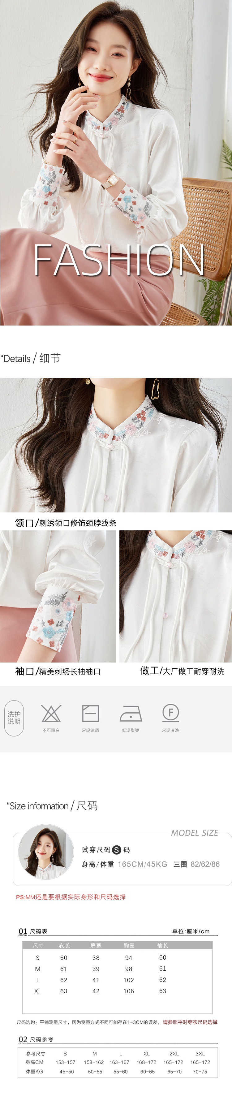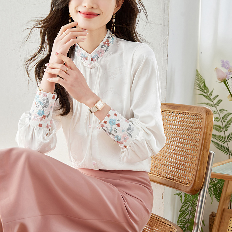 국내 스타일 수 놓은 쉬폰 탑 셔츠 달콤한 표준 H 자형 긴 소매 2024 배송