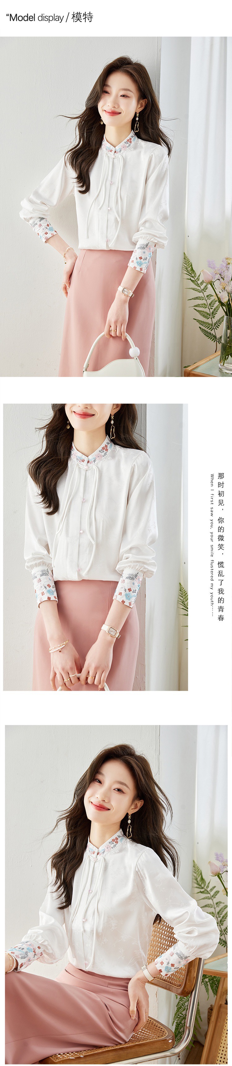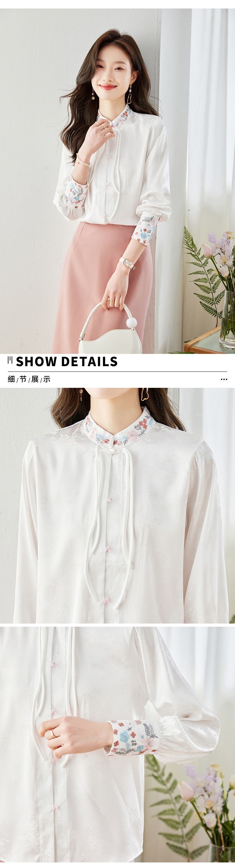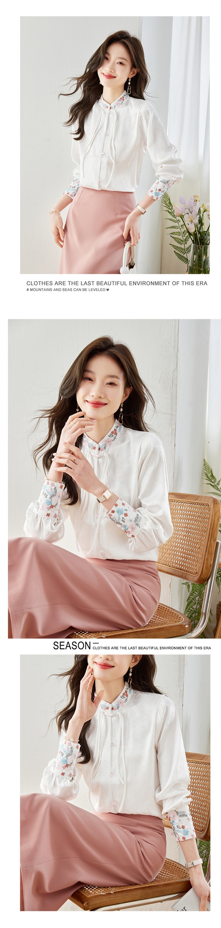 국내 스타일 수 놓은 쉬폰 탑 셔츠 달콤한 표준 H 자형 긴 소매 2024 배송스토어 가기