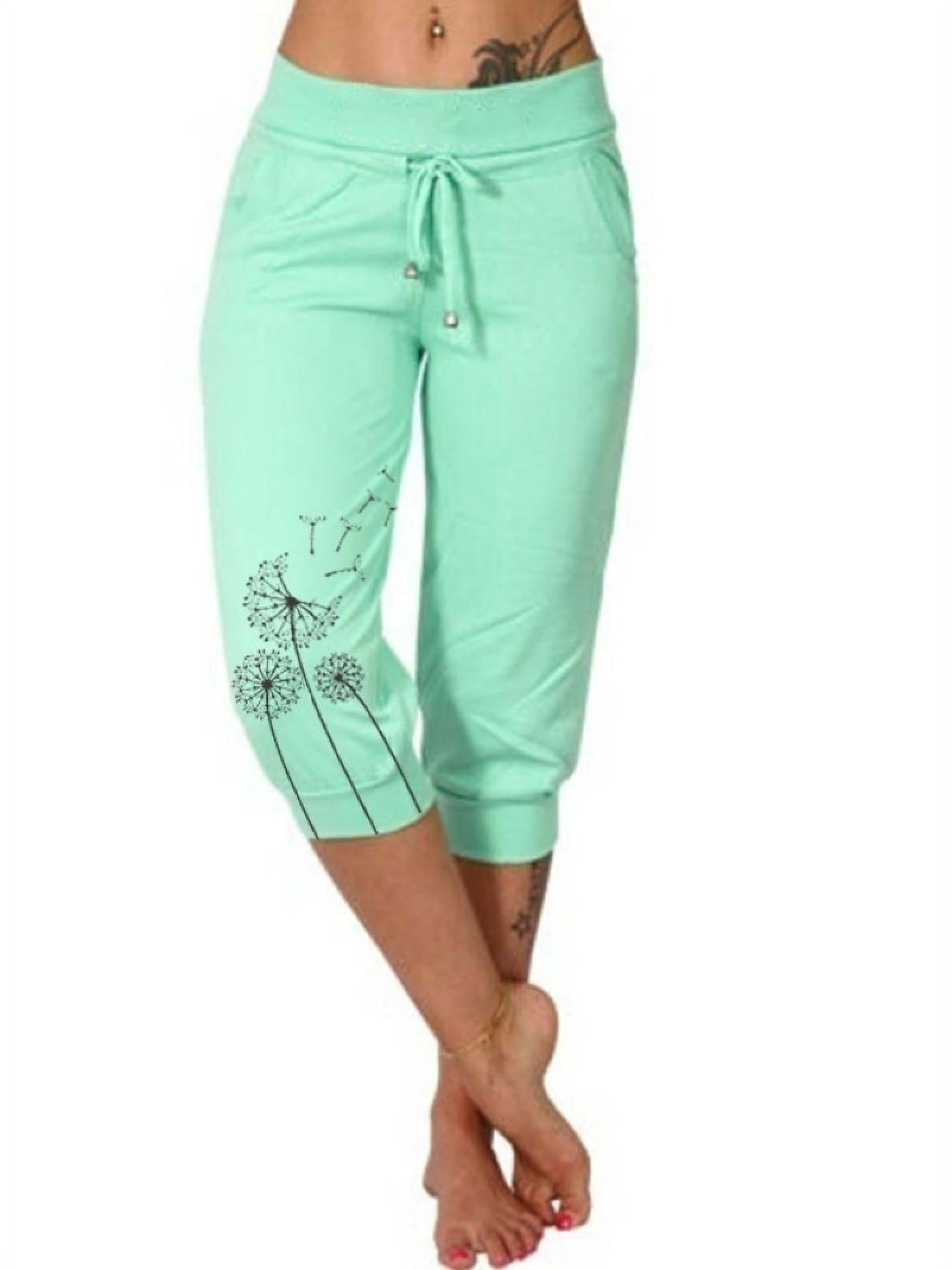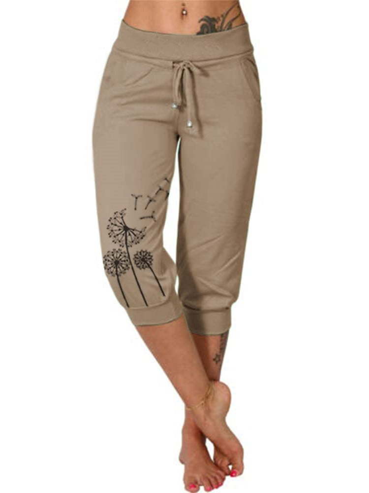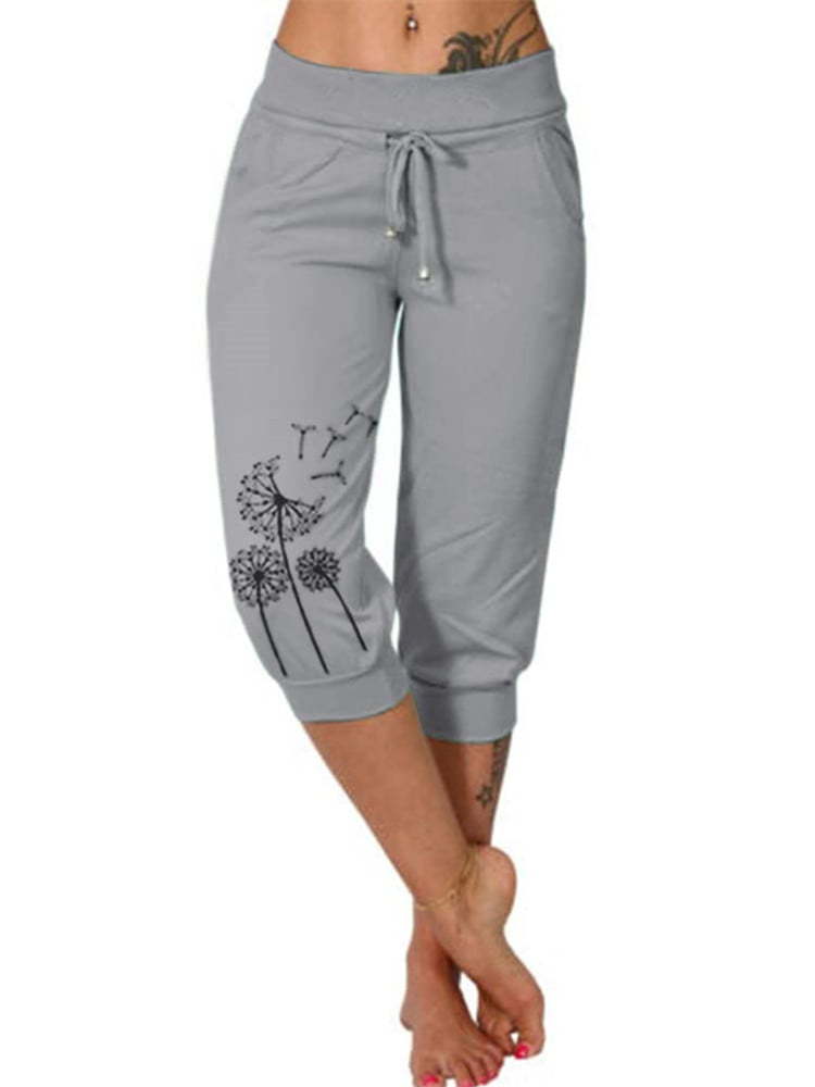 새로운 플러스 사이즈 유럽과 미국의 국경 캐주얼 바지 아마존 소원 패션 인쇄 느슨한 높은 허리 레이스 업 크롭 바지스토어 가기