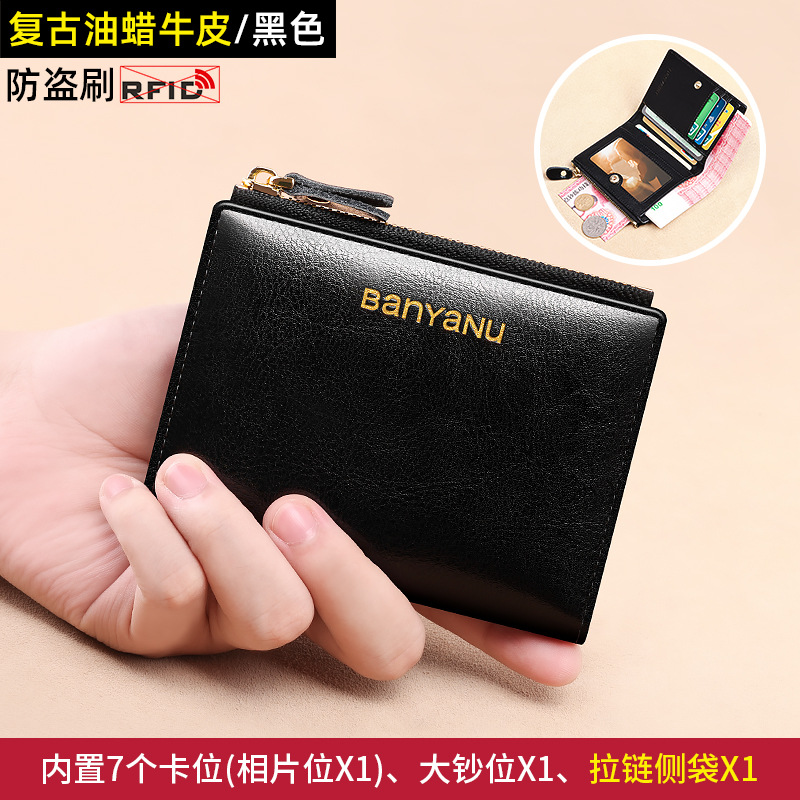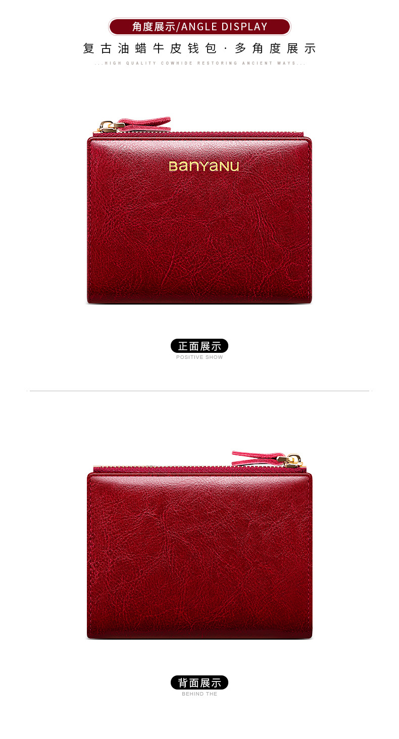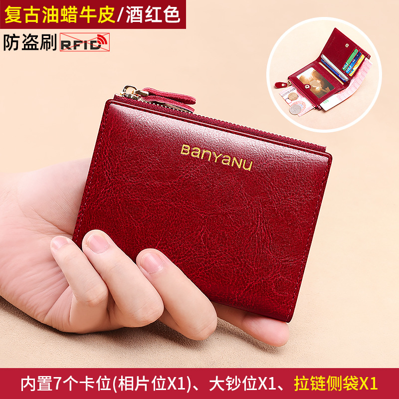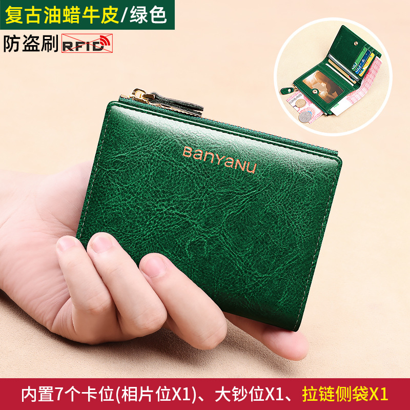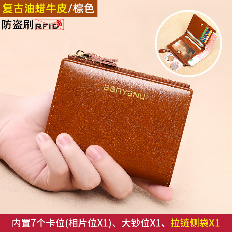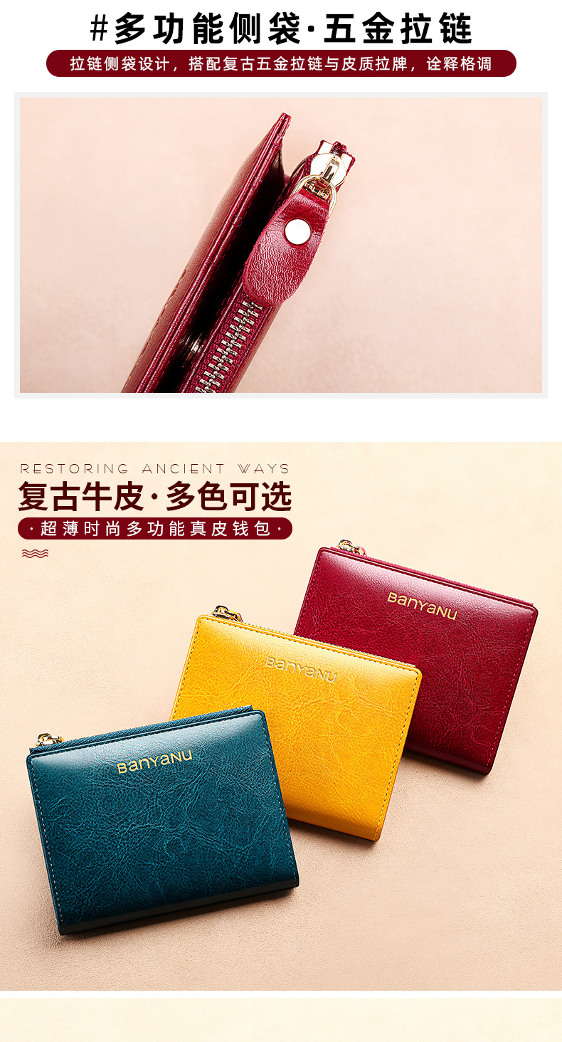 국경 간 지갑 여성 정품 가죽 2025 새로운 초박형 소형 동전 지갑 복고풍 오일 왁스 소 가죽 운전 면허증 카드 홀더