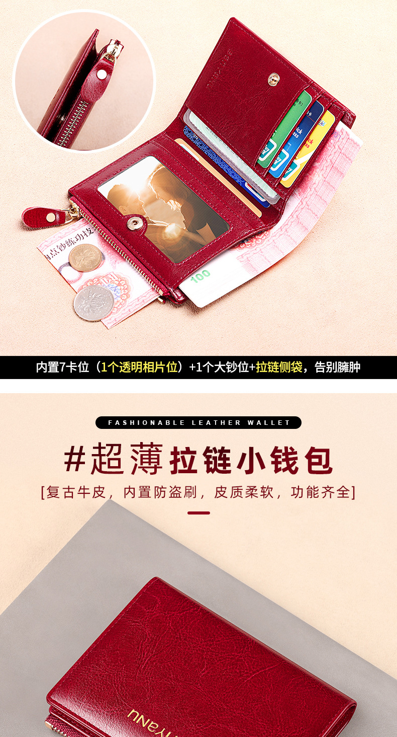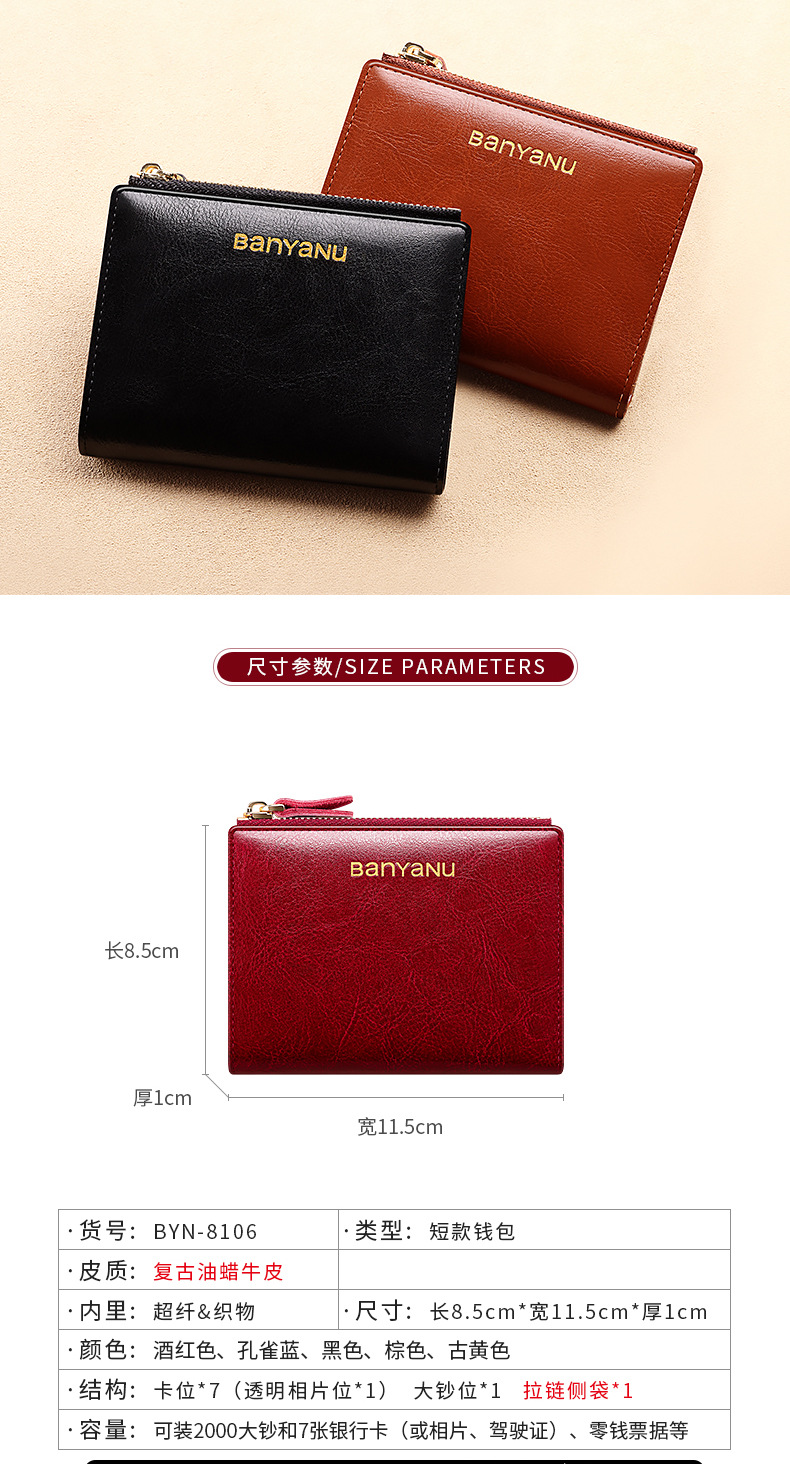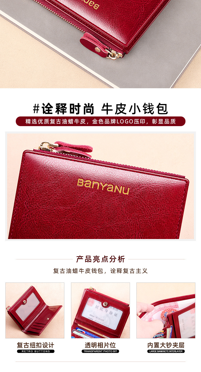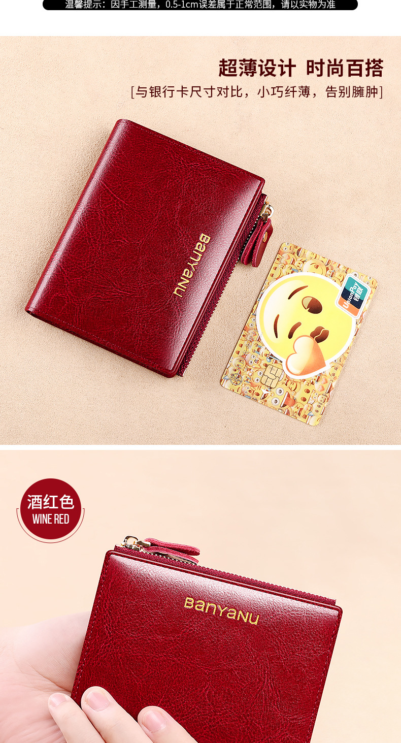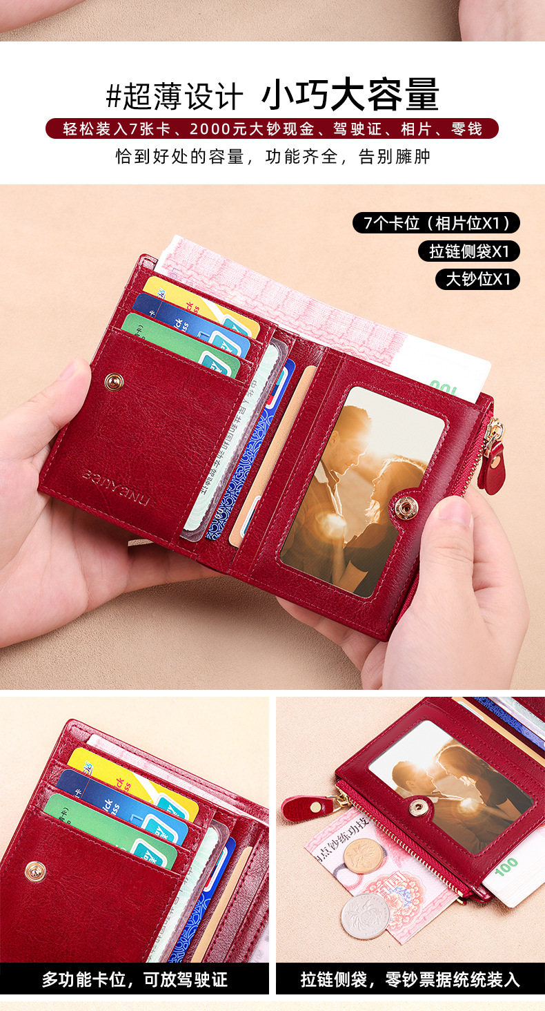 국경 간 지갑 여성 정품 가죽 2025 새로운 초박형 소형 동전 지갑 복고풍 오일 왁스 소 가죽 운전 면허증 카드 홀더