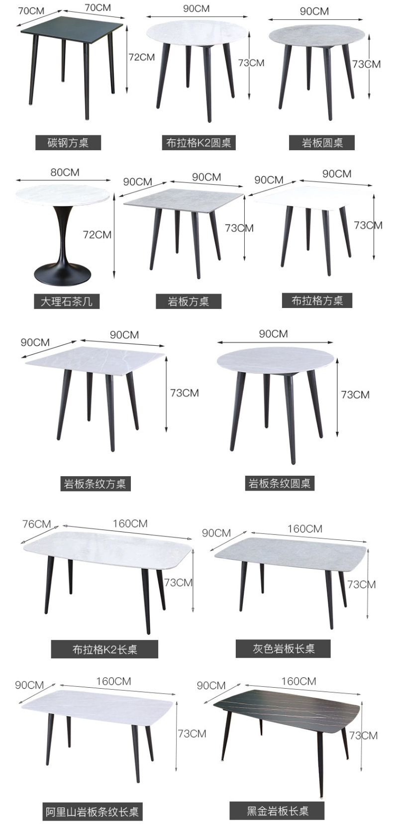 • 6 개의 의자 알리산 바위 석판 긴 테이블
