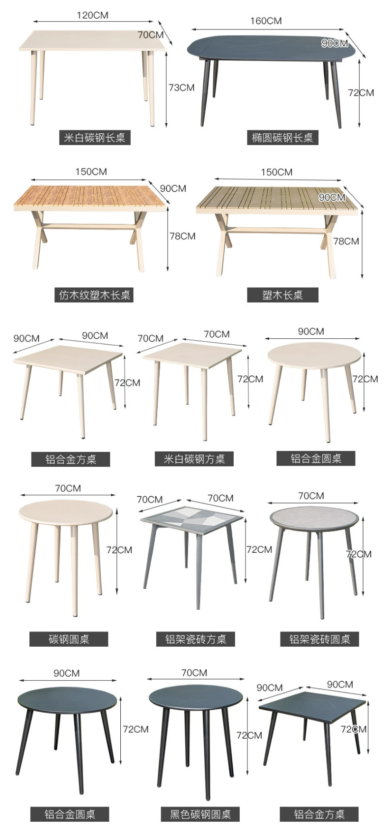 • 4 테이블 화이트 카본 스틸 스퀘어 테이블