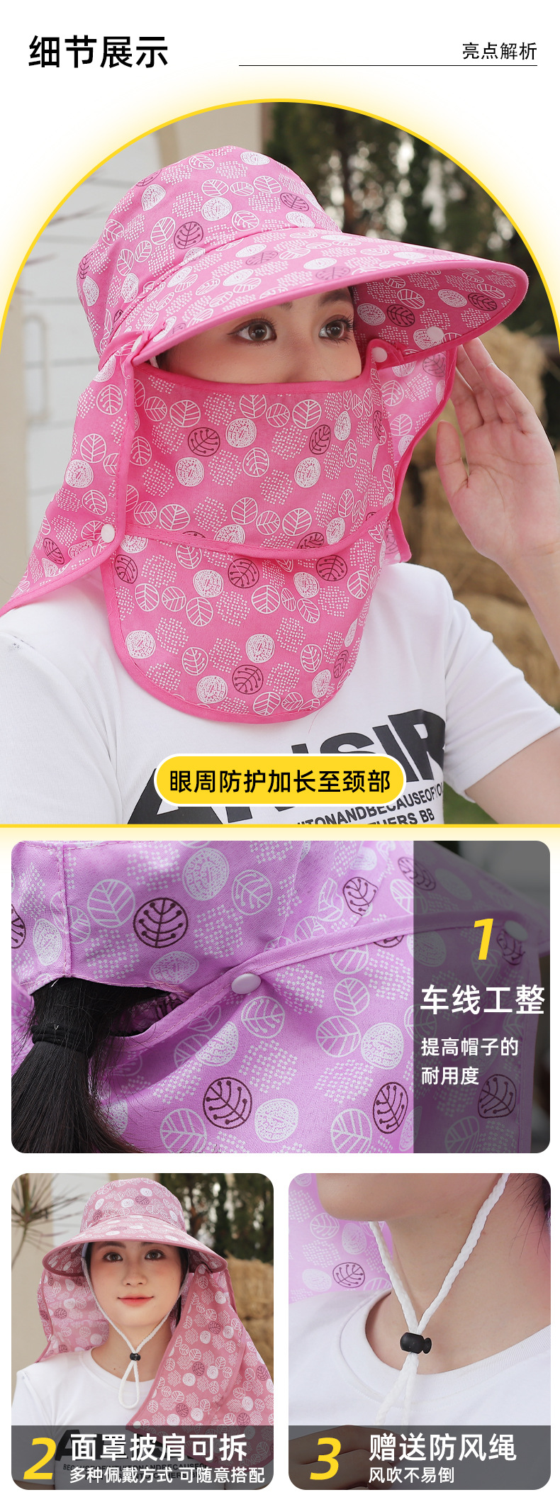 국경 간 여름 여성 여행 태양 모자 야외 작업 태양 모자 캐주얼 해변 모자 분리 가능한 큰 테두리 태양 모자스토어 가기