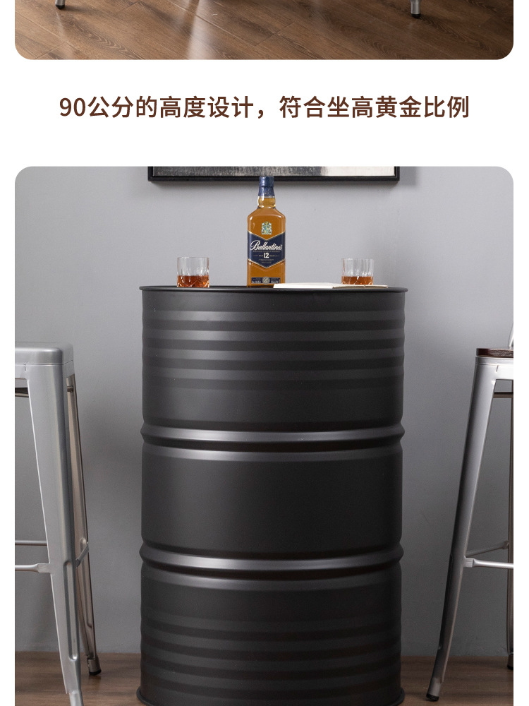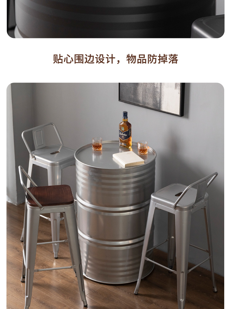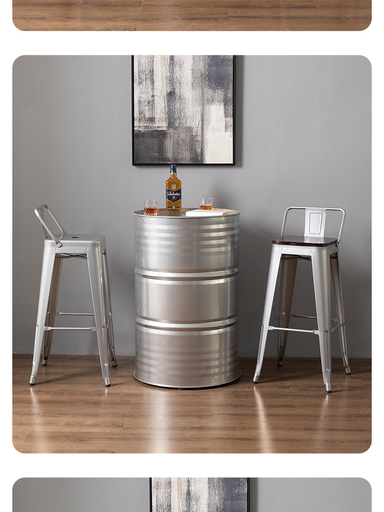 산업용 스타일 오일 버킷 바 흩어져있는 테이블 스탠드 테이블과 의자 미국 야외 휴식 공간 상업 철 높은 다리 테이블과 의자 조합