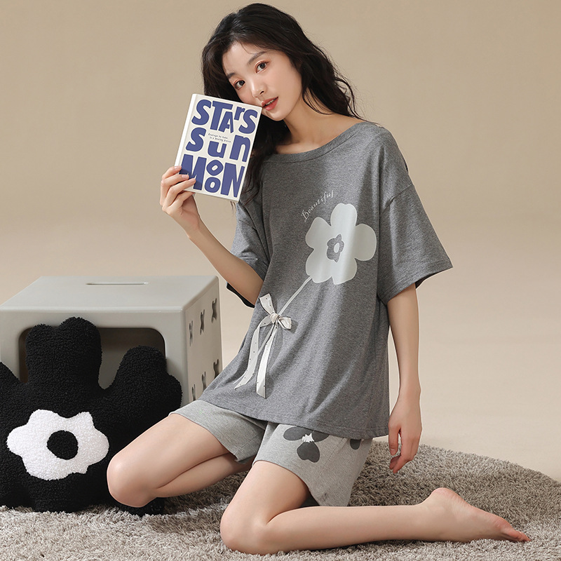 반팔 반바지 카디건 파자마 여성의 봄과 가을 순면 긴팔 홈 착용 얇은 고급 세트스토어 가기