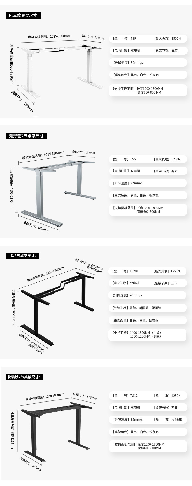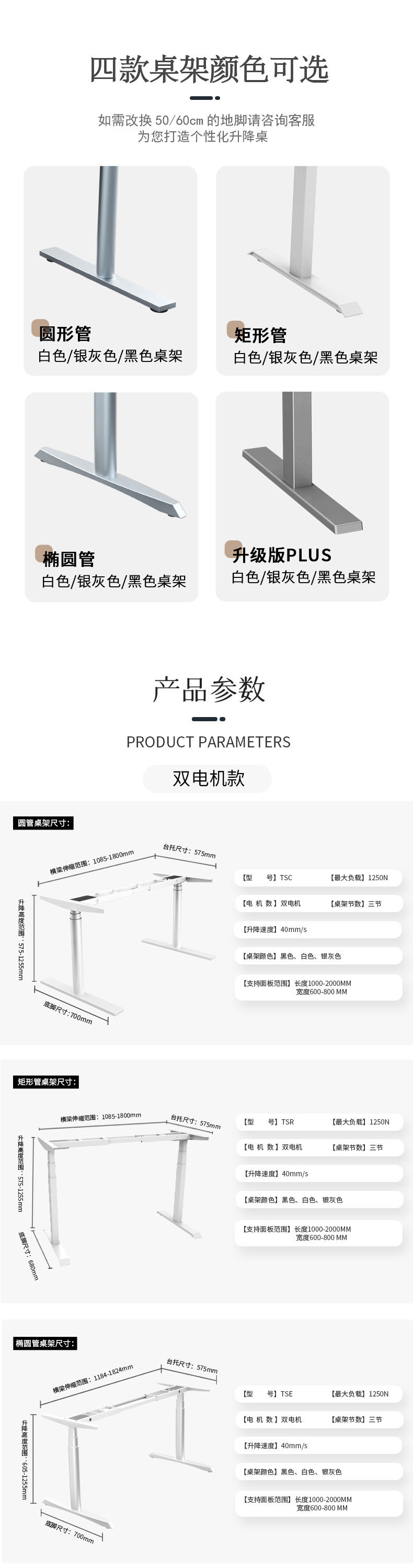 • TSE 더블 모터 3 섹션 타원형 튜브 리프팅 테이블 프레임