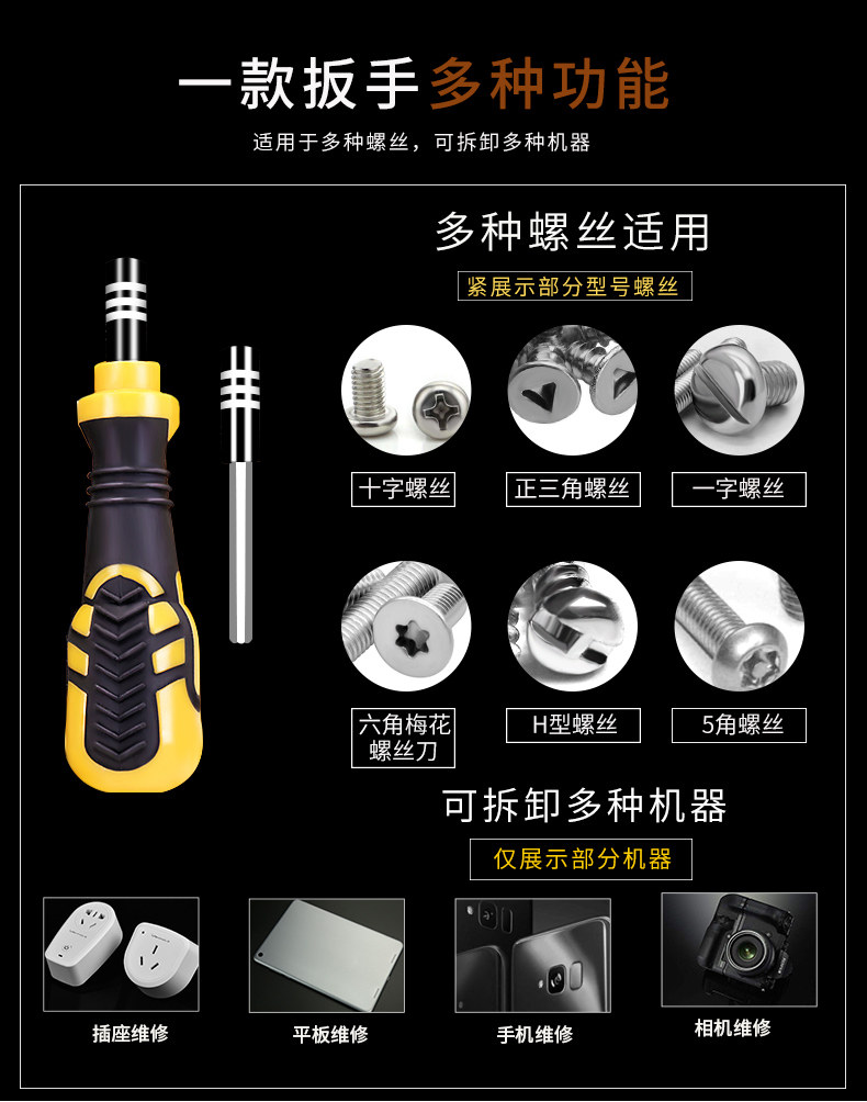 得力螺丝刀套装家用万能十字六角小梅花起子多功能笔记本拆机工具